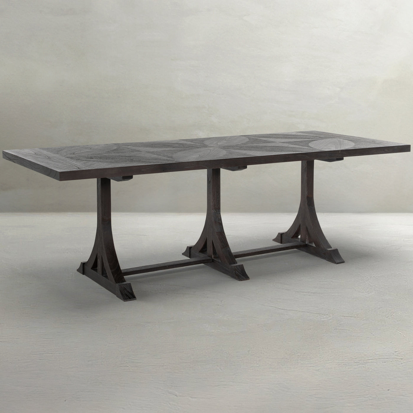 The Adams Dining Table exemplifies the Gabby difference, marrying vintage inspiration with meticulous attention to detail. It presents a harmonious combination of an inlaid oak veneer top featuring an elegant flower pattern, with a base that recalls classic European design, all finished in a dark sophisticated wash. This table is a testament to Gabby's commitment to design excellence—every curve and pattern is a product of careful curation, ensuring each piece stands out as a symbol of both beauty and functionality. Seating eight comfortably, it's not just a centerpiece for dining but a conversation starter, reflecting the rich legacy of detail-oriented craftsmanship that defines Gabby's collection.