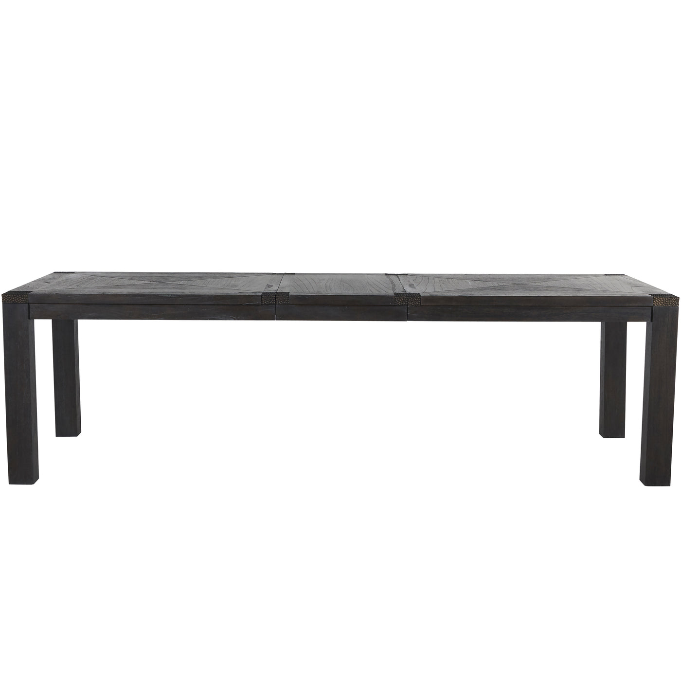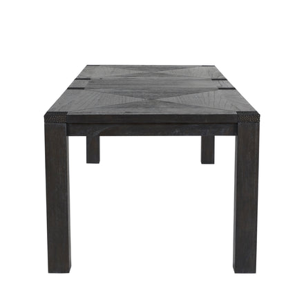 The Beckett Dining Table brings a dramatic sweep of cerused dark Gray, setting an organic and elegantly understated tone. This rectangular Parson-style table features a simple frame accented with hammered corners and a clean X-motif inlaid metal in a dark bronze finish. It combines refined craftsmanship with a modern edge, comfortably seating 6 to 8 guests for an inviting dining experience.