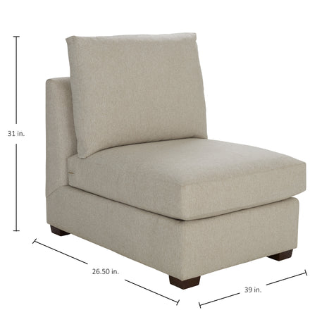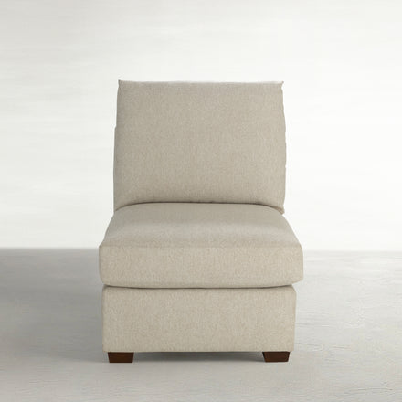 The Burk Armless Chair offers streamlined comfort and versatility, making it an excellent standalone piece or part of a modular arrangement. With its deep plush seat and high back, it provides both support and relaxation in a minimalist silhouette. Custom-made in North Carolina, this piece seamlessly integrates into a sectional configuration, offering versatility and comfort to create the perfect seating arrangement for any space.