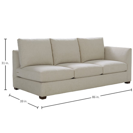 The Burk Right-Arm Facing (RAF) Sofa is a standout modular piece, offering spacious seating with deep cushions and a supportive high back. Its right-arm configuration makes it an integral part of any custom sectional design, allowing you to create a layout that suits your space and lifestyle. Designed for comfort and versatility, the Burk RAF Sofa blends seamlessly with other pieces in the collection, giving you the freedom to design your ideal seating solution.