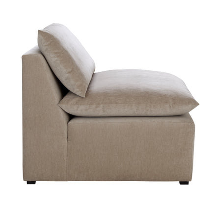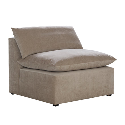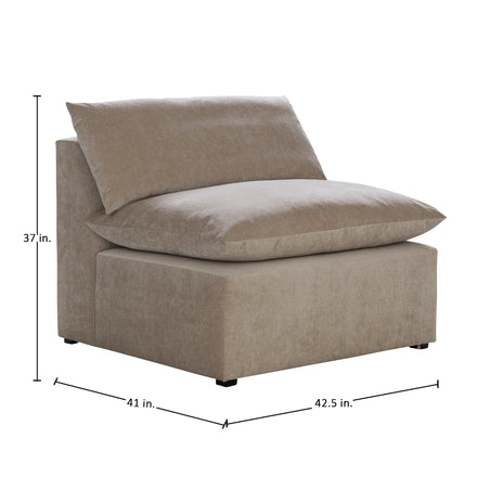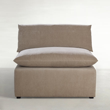 The Carrera Bay Armless Chair offers a modern, laid-back elegance with its low-profile silhouette and deep, inviting seat. Designed for ultimate relaxation, it features oversized, cloud-like cushions that deliver a plush, sink-in feel, perfect for lounging. Its armless design allows for flexible placement—whether styled alone as a statement piece or paired with other Carrera Bay modular components to create a custom seating arrangement. Upholstered in your choice of fabric, you can visit your local Gabby store to explore the full selection and personalize it to suit your space.