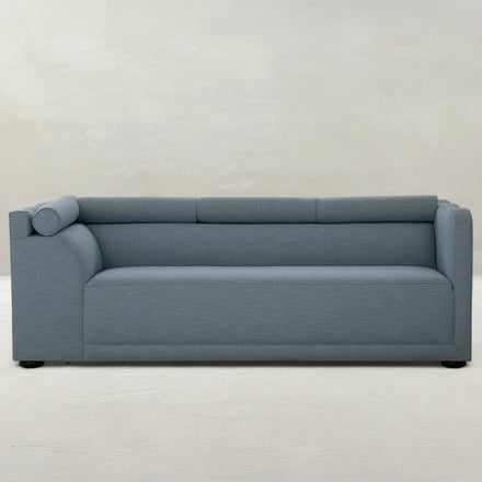 The Olera RAF Corner Sofa anchors the modular collection with sculptural elegance and inviting comfort. Its high, undulating back and arms create a distinctive form, while the tight seat and back are complemented by plush bolsters. The contemporary silhouette is finished with smooth, circular wooden feet. Pairs perfectly with other Olera modules for a cohesive, modern composition.