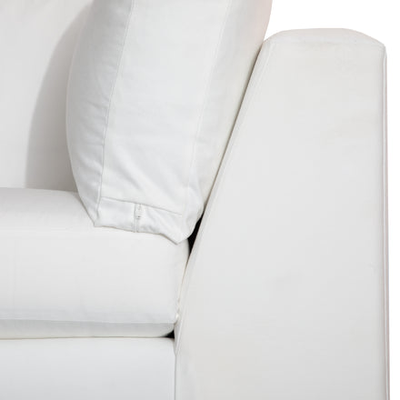 - Clean, squared arms and simple silhouettes deliver a versatile, timeless look.
