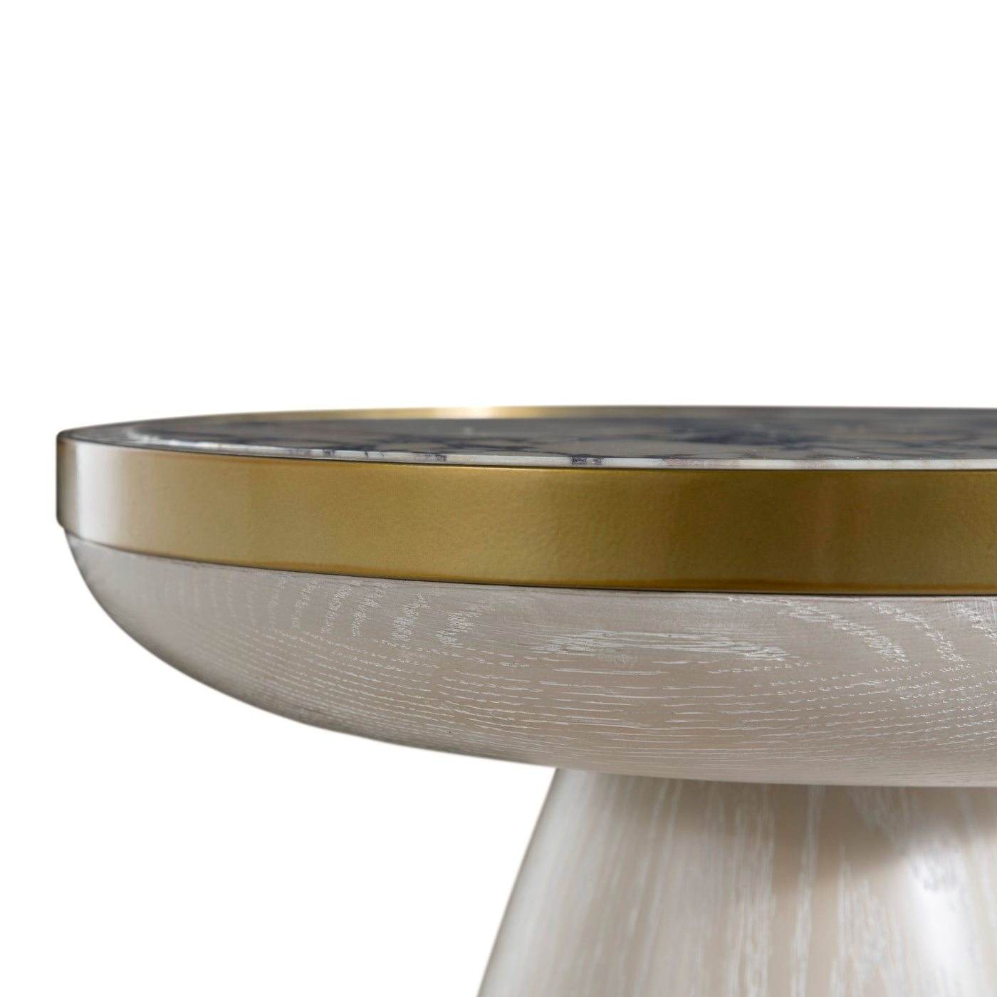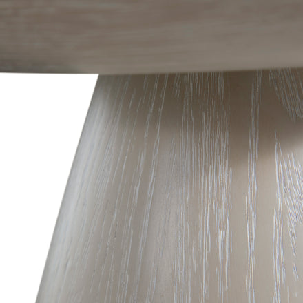- Sculptural base crafted in genuine white cerused oak veneer for warmth and sophisticated texture