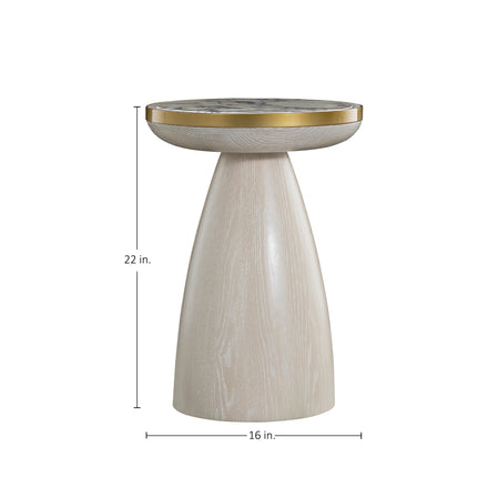 Cain Wood Round Marble Top Side Table - White, 16 in. W x 22 in. H