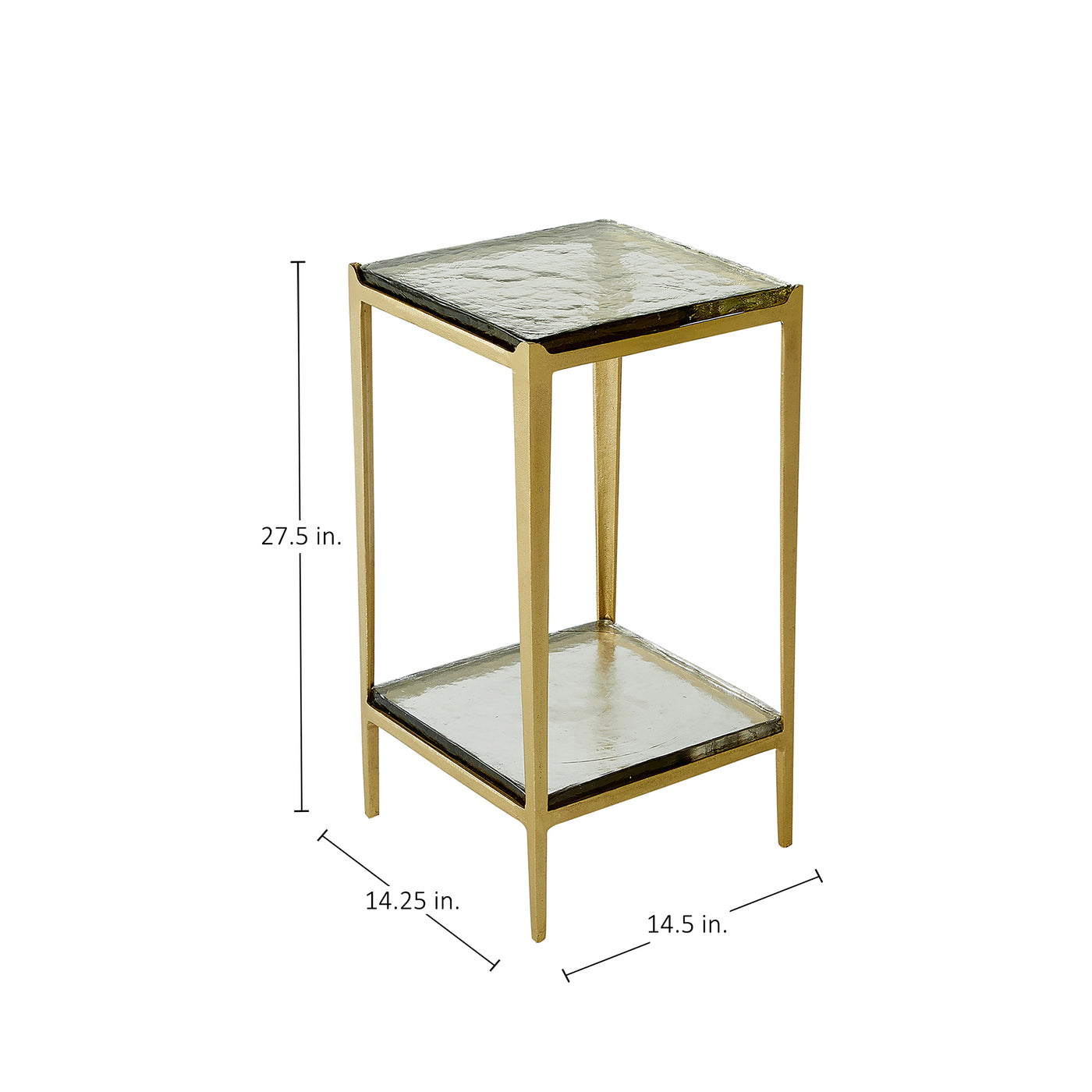 - Thick cast glass top and lower shelf with elegant texture bring depth and refinement to the design