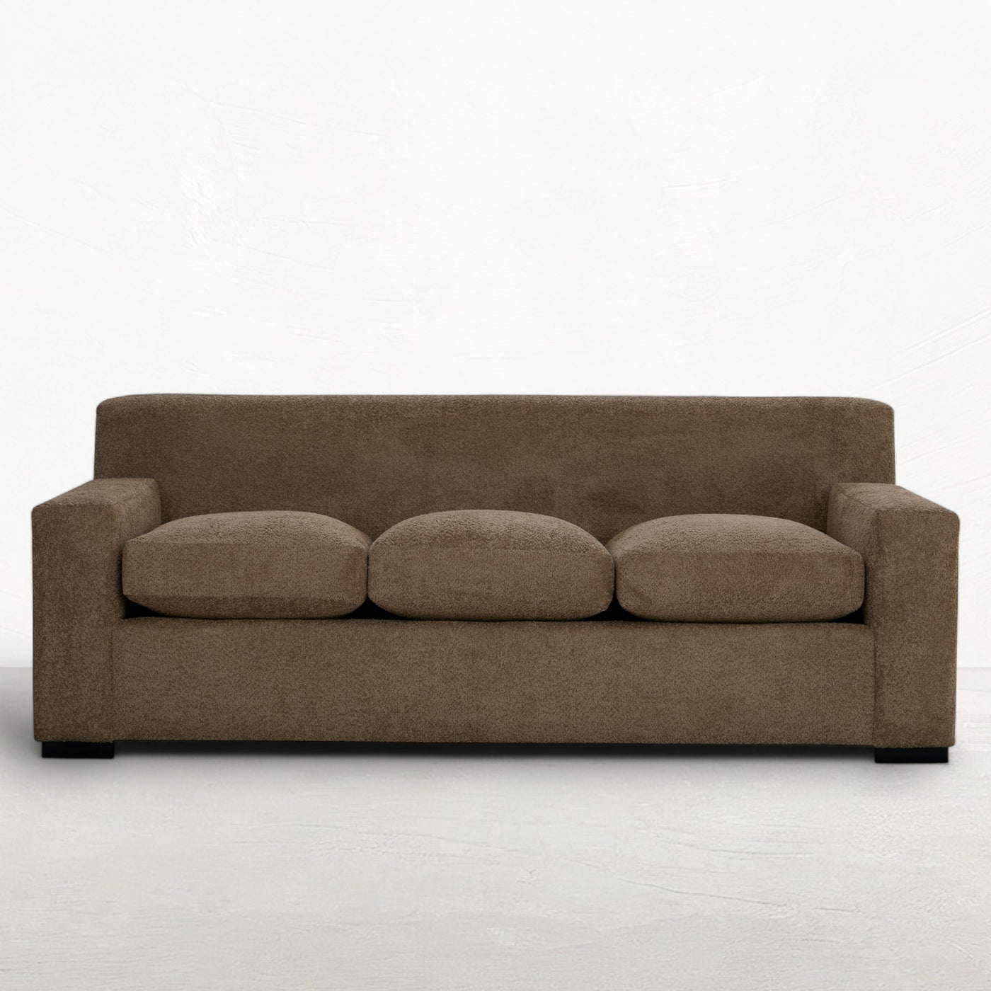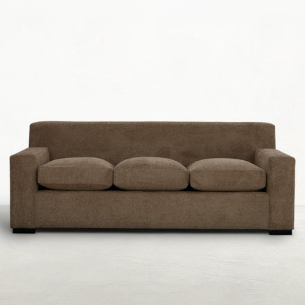 Spacious yet sleek, the Brannan Sofa anchors any modern interior with its bold geometry and refined comfort. The plush, removable seat cushions contrast beautifully with the built-in back cushions for a structured but inviting feel. Wide armrests and a floor-length upholstered base reinforce its architectural presence, while the subtle side divots add understated detail to the design. Perfect for both relaxed lounging and elevated entertaining.