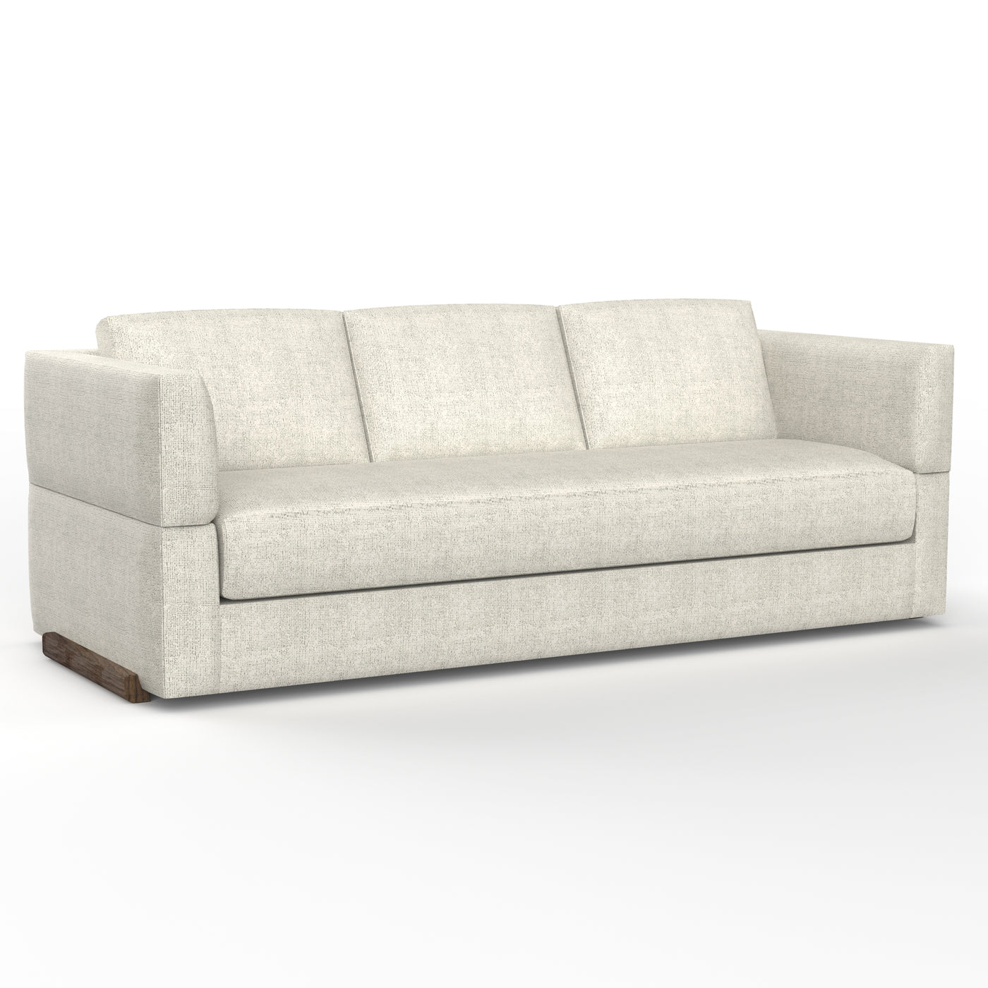 The Halden Sofa embodies modern sophistication through its clean lines, tailored detailing, and inviting comfort. Fully upholstered and tightly tailored, it exudes a crisp, contemporary look while maintaining a soft, welcoming feel. The the wooden design detail at the base grounds the design with warmth and a touch of natural contrast. High, well-cushioned arms make it comfortable to lean into, while the loose seat and back cushions can be fluffed to keep their shape and plushness over time. The single bench-style seat reinforces its modern aesthetic, creating a polished piece that fits beautifully in both casual and elevated settings. Available in a wide range of fabric options, with additional choices offered in-store. The Halden design is also available in a modular collection for customizable configurations.