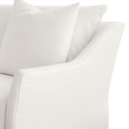 - Slender sloped arms flow gracefully into the back for a cohesive silhouette.