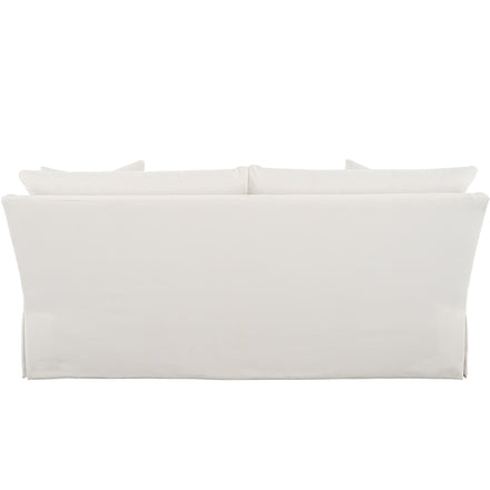 Blending timeless elegance with modern appeal, the Orgill Falls Sofa features a refined silhouette that fits seamlessly across various decors. Its slender sloped arms merge gracefully with the back, encasing an optional plush bench seat that sits on a skirted frame. Handcrafted with a durable hardwood frame and customizable in a selection of fine fabrics, this piece marries craftsmanship with versatile design, making it a distinguished choice for any living space.