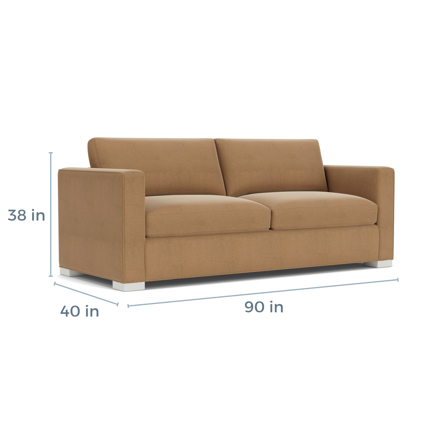 The Tedesco Sofa elevates any living space with its contemporary silhouette and flat arm rests. Featuring tailored touches throughout for a sleek finish, this sofa offers plush cushions that provide an inviting space for relaxation. Combining style with comfort, the Tedesco Sofa is a sophisticated addition to living rooms, family rooms, or sitting areas, enhancing your decor with its modern design and luxurious feel, ensuring both comfort and elegance. Handcrafted in North Carolina by skilled American artisans.