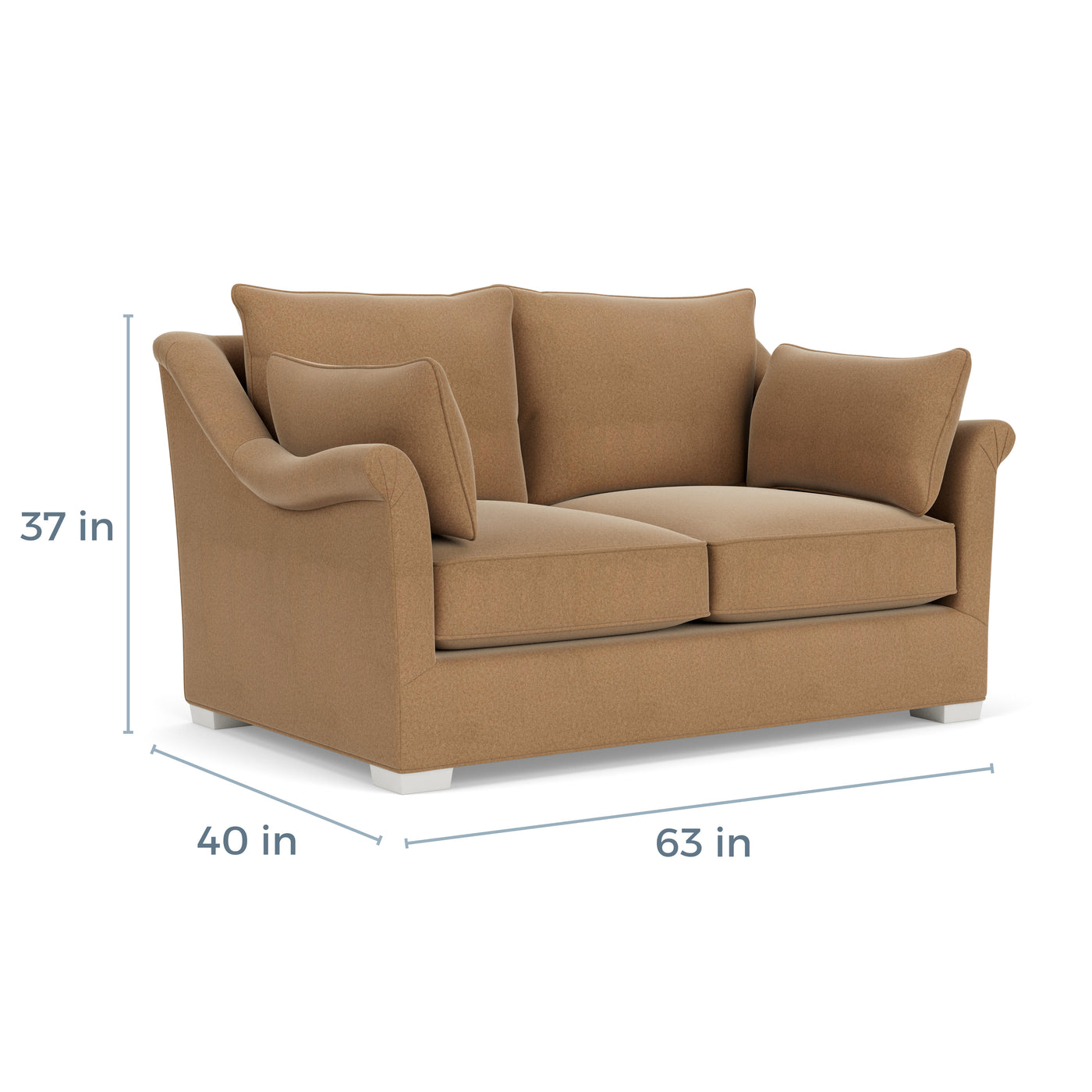 The Westley Shallow Seat Settee, an embodiment of comfort and elegance, features the signature large sloping arms and a more intimate seating arrangement than its chair counterpart. Designed with a shallower seat depth, it provides the perfect balance of support and sink-in comfort, making it ideal for cozy conversations and relaxation. This settee is enhanced with plush cushioning and includes a kidney pillow for added lumbar support. Despite its more compact size, it maintains a generous width, offering ample space for two to sit comfortably. Handcrafted in North Carolina and standing on sturdy wooden legs, the Westley Settee is a testament to timeless design and superior craftsmanship, providing a chic and comfortable addition to any living space.