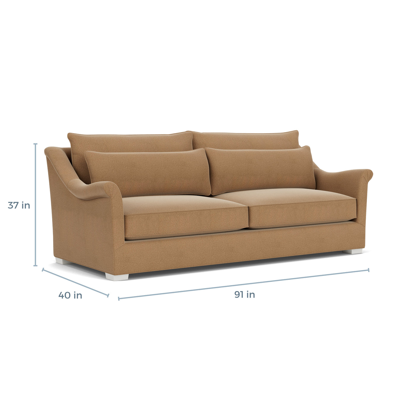 The Westley Sofa caters to those craving both style and comfort, featuring elegant curves and a comfortable upholstered frame for a chic look. Its large, sloping arms add a touch of grace, rolling outward to create a distinctive silhouette. Accompanied by kidney pillows and a two-over-one cushion design, it sits on wooden legs. This handcrafted North Carolina creation is a highlight of comfort in our collection.