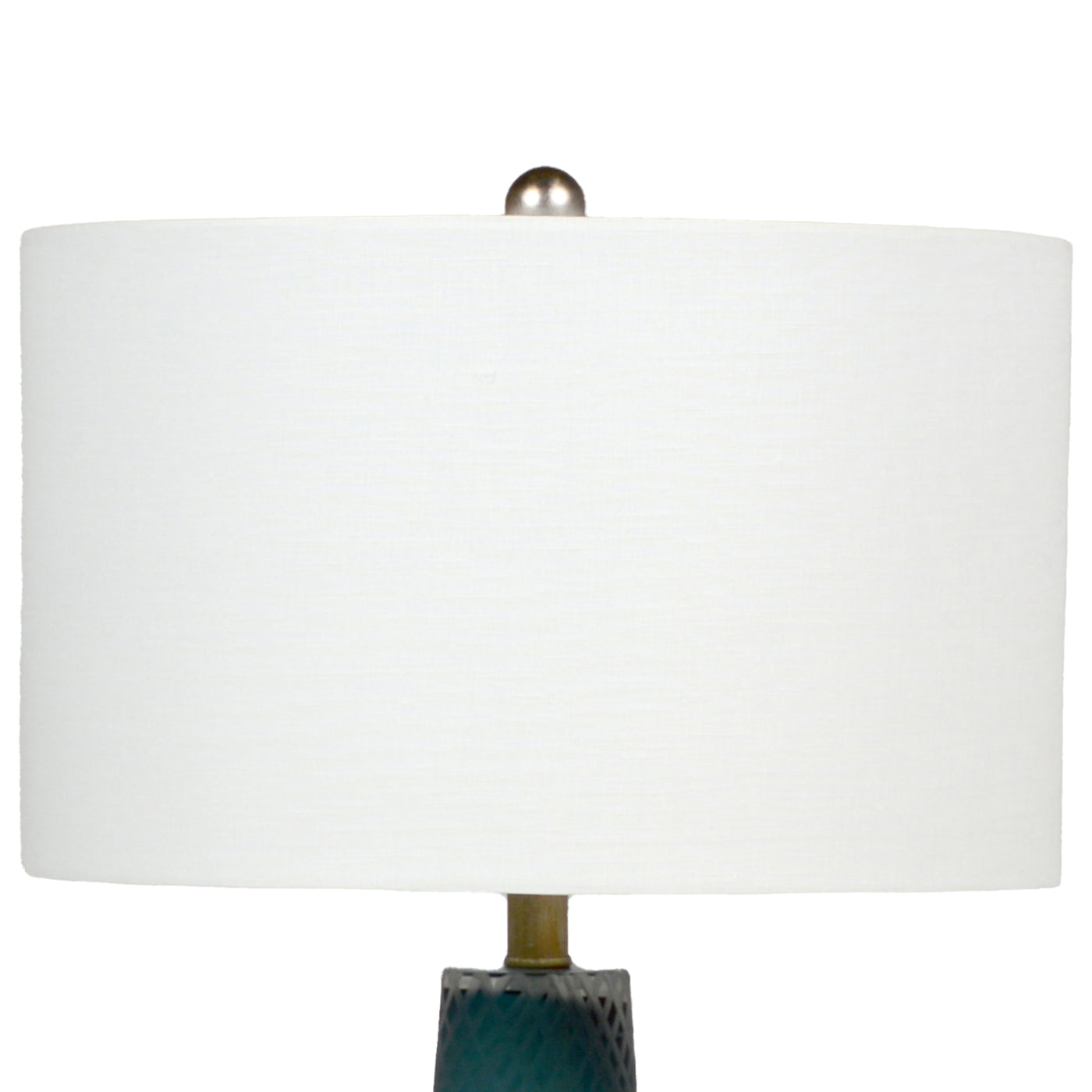 - Classic white drum shade balances the striking base, offering a clean, contemporary look with timeless appeal