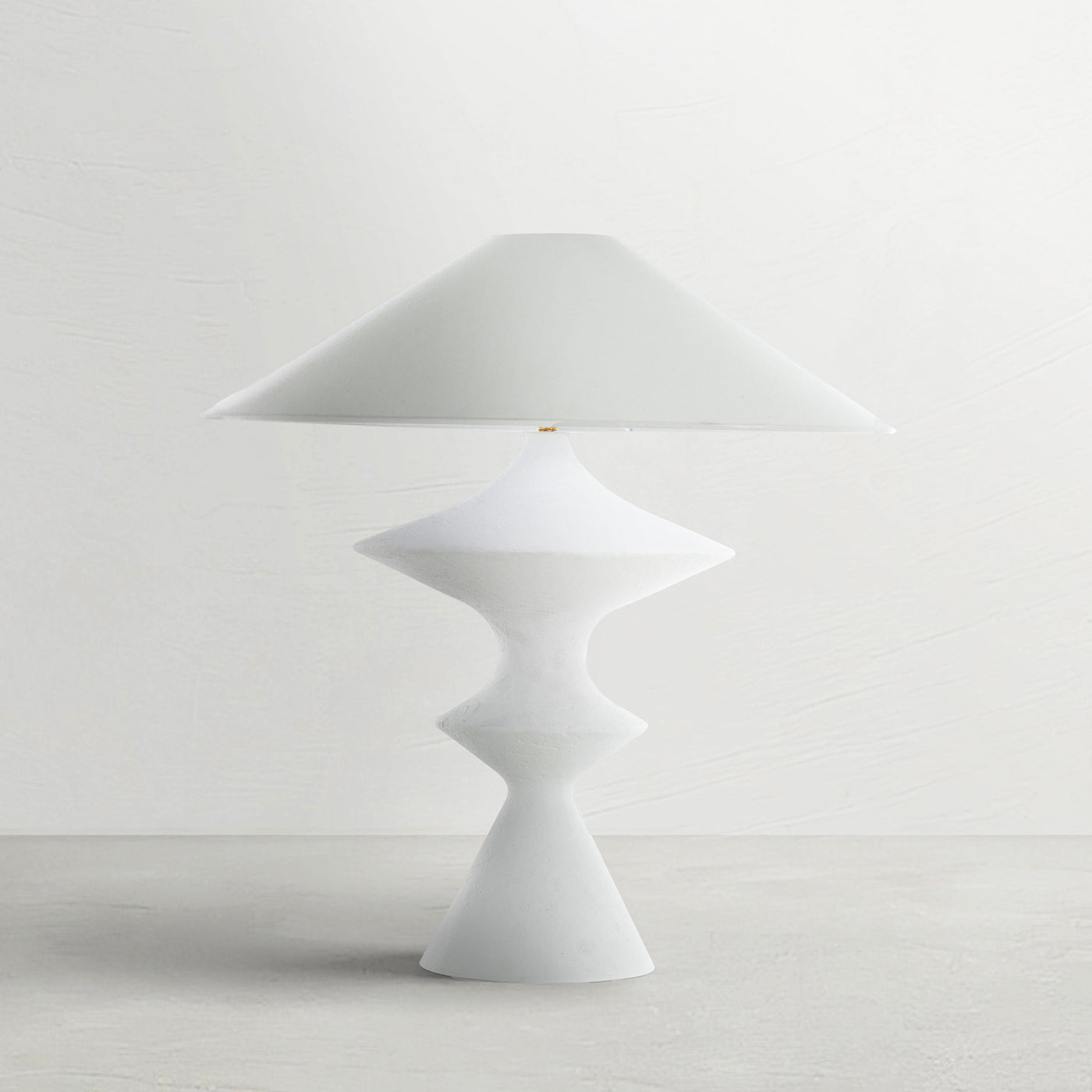 The Darcy Table Lamp in White is a sleek and modern statement piece, perfect for brightening any room with its crisp and clean aesthetic. Crafted from textured resin, the sculptural stem features a unique geometric design, adding depth and character. The matching white shade enhances the lamp’s minimalist elegance, casting a soft, ambient glow. Ideal for living rooms, bedrooms, or offices, the Darcy Table Lamp in White combines functional lighting with contemporary artistry, making it a versatile addition to any space.