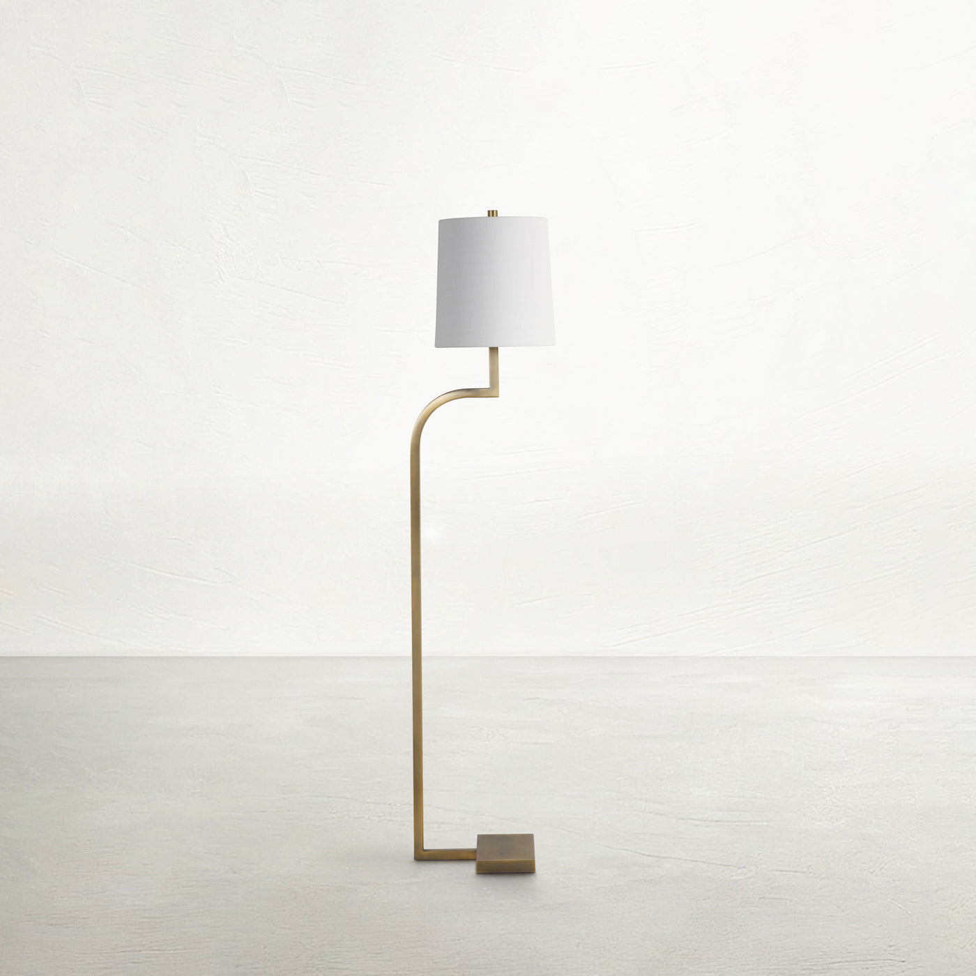 The Hawthorne Floor Lamp is a striking combination of modern design and classic elegance. Crafted from iron with a matte antique brass finish, this floor lamp features a sleek, curved silhouette that adds a touch of sophistication, while also making it incredibly easy to slide under furniture while giving out plenty of light. The design is topped with a crisp white linen shade, which provides a soft, diffused light perfect for creating a warm and inviting atmosphere. Ideal for living rooms, bedrooms, or reading nooks, the Hawthorne Floor Lamp effortlessly enhances your decor with its timeless appeal.
