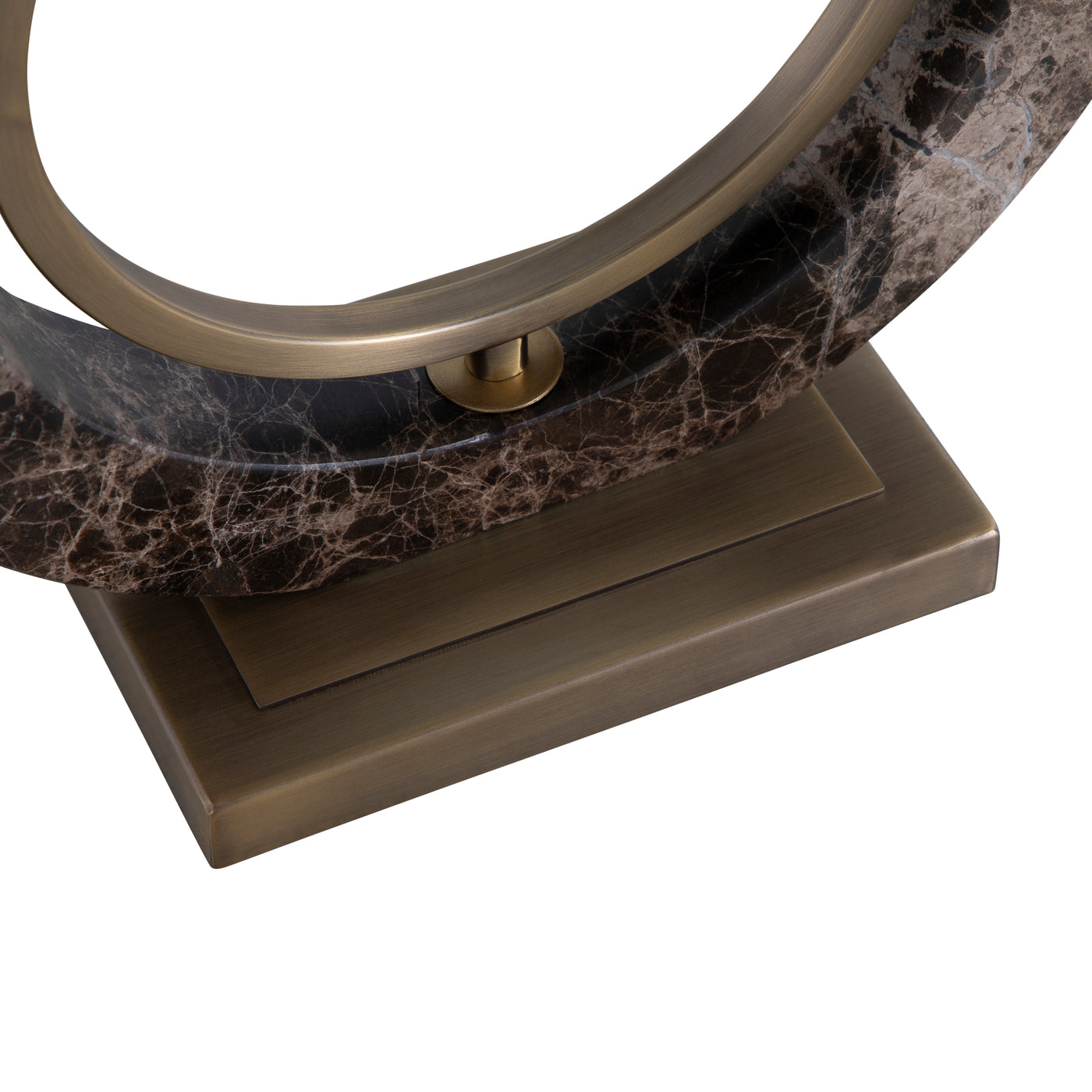 - Crafted from honed marble with a matte antique brass ring for a refined, sophisticated look