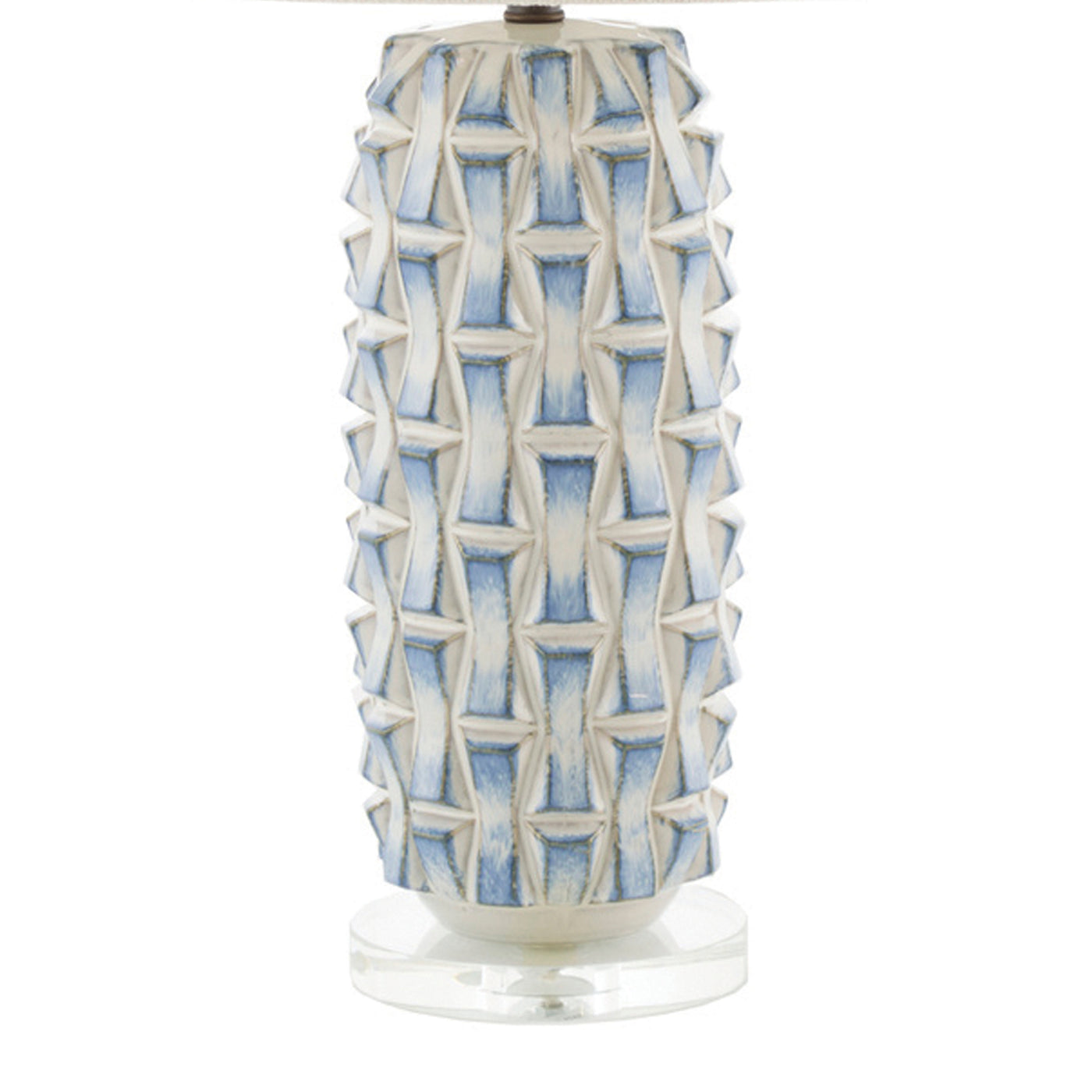 - Crafted with a striking blue and white ceramic base that evokes a fresh, coastal-inspired aesthetic