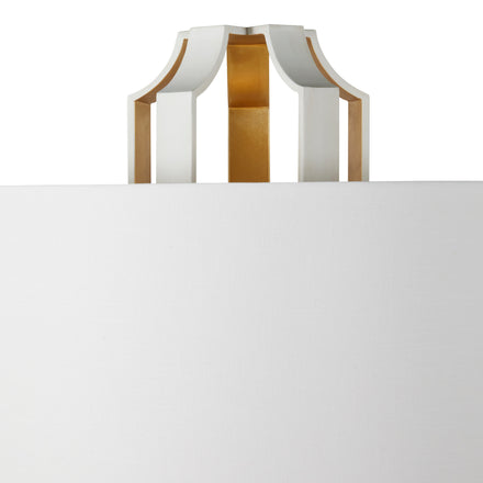 The Krista Floor Lamp is a commanding design piece that draws attention in any room with its 80" height. Its classic styling is beautifully enhanced by a contrasting two-tone finish of coral white and vintage gold, giving it a unique and sophisticated appeal. A solid circle of white marble provides a sturdy base, ensuring stability. The white linen shade diffuses light softly, creating a warm and inviting ambiance. Perfect for living rooms or large spaces, this floor lamp is both functional and stylish.