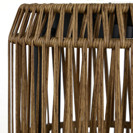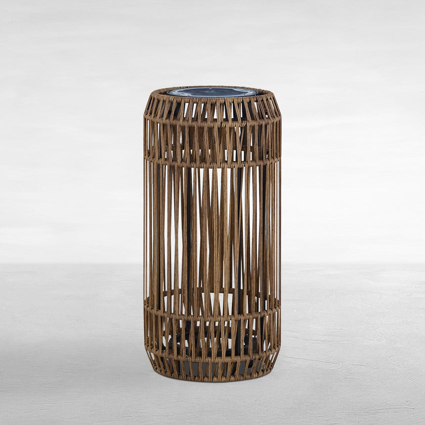 Compact yet full of character, the Pointe Small Lantern elevates outdoor spaces with its woven texture and clean, organic form. Made entirely of weather-resistant N-Dura™ resin wicker, it is both lightweight and durable. A removable LED module delivers soft, customizable lighting—no flames, glass, or candles required. With solar and main power charging, plus touch and remote operation, it offers modern convenience in a timeless silhouette. Ideal for accenting dining tables, ledges, steps, or layering in tiered groupings with other sizes for a dynamic glow.