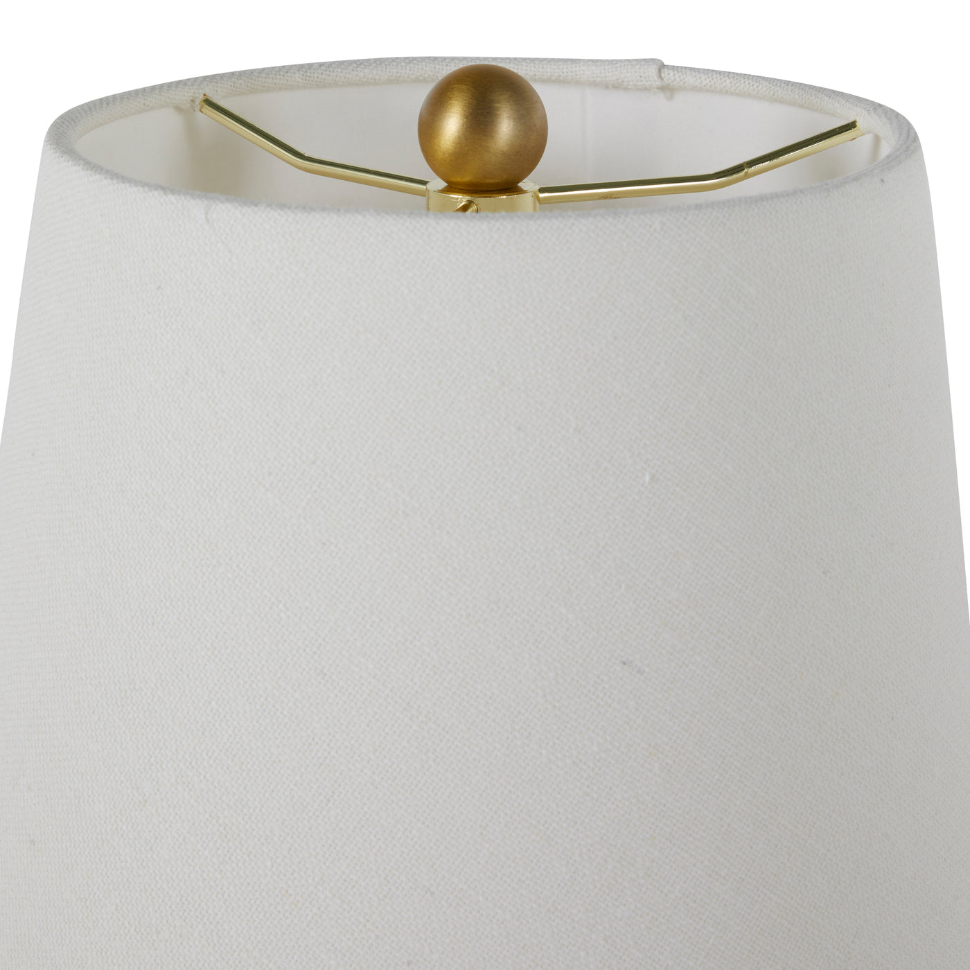 - Stained gold-toned metal detail enhances the lamp's refined, minimalist appeal
