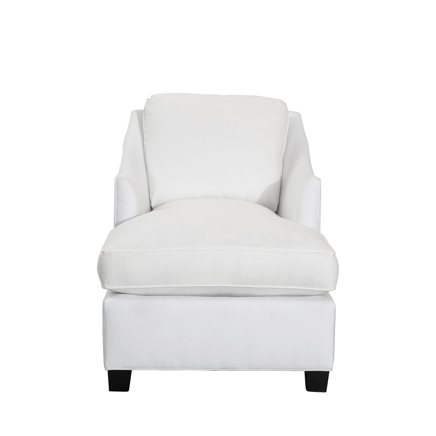The Baldwin Chaise combines the refined elegance of traditional European design with a modern flair. Featuring gracefully sloped arms and soft curves, its precisely tailored bottom upholstery highlights its beautifully crafted wooden legs, adding a touch of sophistication. A down-filled cushion offers plush, luxurious comfort, while the extended chaise design provides an inviting space to stretch out and relax. The subtle seat curve enhances the chaise's elegant silhouette, making it a timeless addition to any living space. Visit your local store to explore our full fabric assortment.