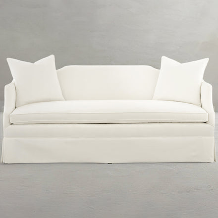 The Patrick Sofa, a testament to classic European design, showcases sophistication in a compact form. Meticulously handcrafted in North Carolina, it features a sculpted back and arms, a slim bench cushion, and a tightly skirted bottom that conceals the feet for a sleek silhouette. With its artisanal elegance and formal aesthetic, this sofa is an exquisite addition to any refined space.