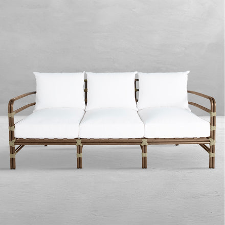 Introducing the Malibu High Back Sofa, a standout piece from our Malibu Collection, designed to bring timeless elegance and modern durability to your outdoor living space. Inspired by the classic look of natural rattan, this sofa features a high-quality wrought aluminum frame paired with our incredibly durable N-Duraâ„¢ resin weaving. The visually contrasting crossover wrapped joints mimic traditional binding work, adding a touch of craftsmanship while the high back offer superior support and comfort. For customers seeking value in outdoor furniture, the Malibu High Back Sofa offers exceptional durability, easy maintenance, and timeless style.