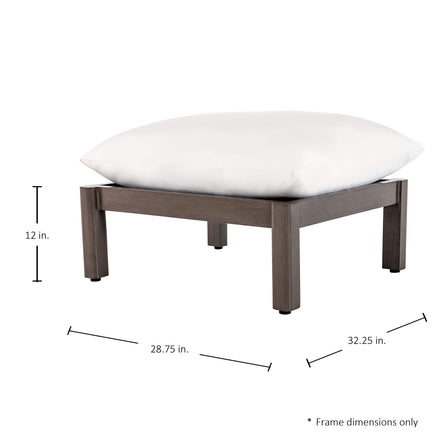 Introducing the Monterey Aluminum Ottoman, a perfect companion to the Monterey Aluminum Lounge or Sofa, offering both modern sophistication and exceptional durability. This ottoman features a sleek, contemporary design with clean lines that effortlessly complements any outdoor space. The ultra-plush Dream Cloud Firm cushion provides ultimate comfort, making it an inviting addition for resting your feet or providing extra seating. Crafted from premium wrought aluminum, the Monterey Aluminum Ottoman is built to withstand the elements. It boasts a triple-layer coating for ultimate weather resistance, including an architectural-grade powder coating and a multi-tonal finish that adds visual depth and sophistication. This robust construction protects the ottoman from corrosion, fading, and wear, ensuring it remains beautiful and functional for years to come.
