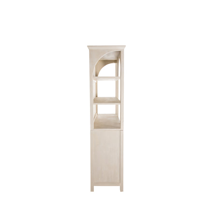 The Edison Cabinet exudes a stately elegance with its graceful arches and timeless appeal. Its style blends classic design elements with modern simplicity, featuring a serene sesame finish that complements any interior color palette. The Edison Cabinet's generous size and open shelving offer a splendid display space for books, decorative items, or treasured mementos, inviting homeowners to create a personalized showcase. Below, enclosed cabinets provide concealed storage, ideal for organizing household essentials out of sight, making it a versatile addition to a living room, dining area, or home office. The combination of display and storage makes the Edison Cabinet a multifunctional piece that is as practical as it is beautiful, ensuring it's not just a furniture piece but a central feature of a home's design and organization.