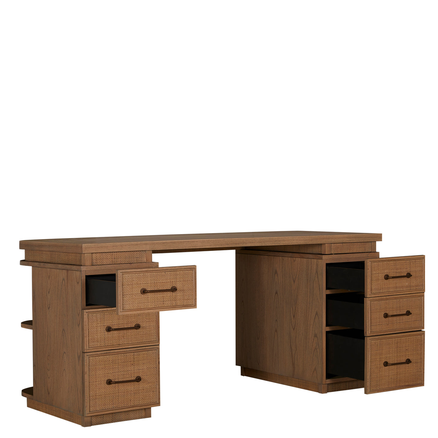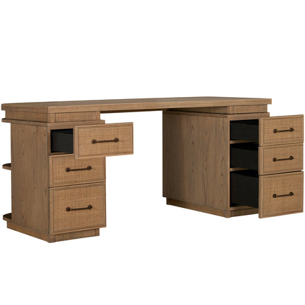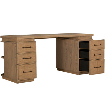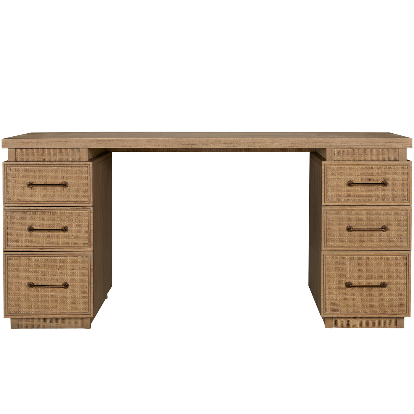 Elsa Mindi Wood Desk - 6 Soft-Close Drawers, Blonde Natural