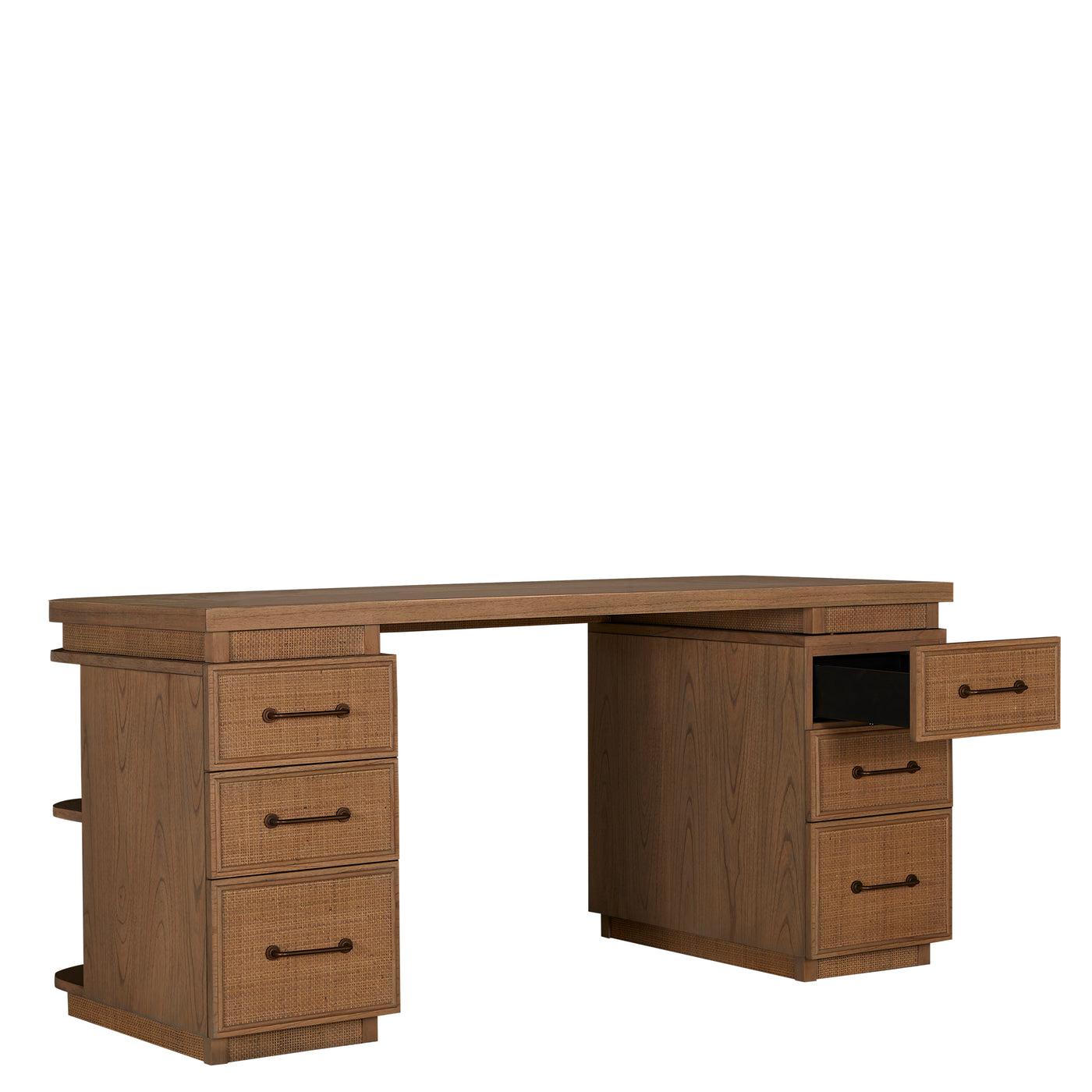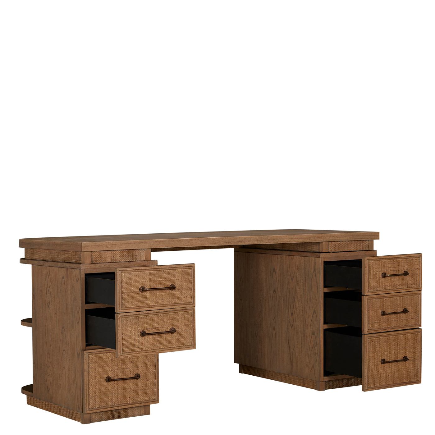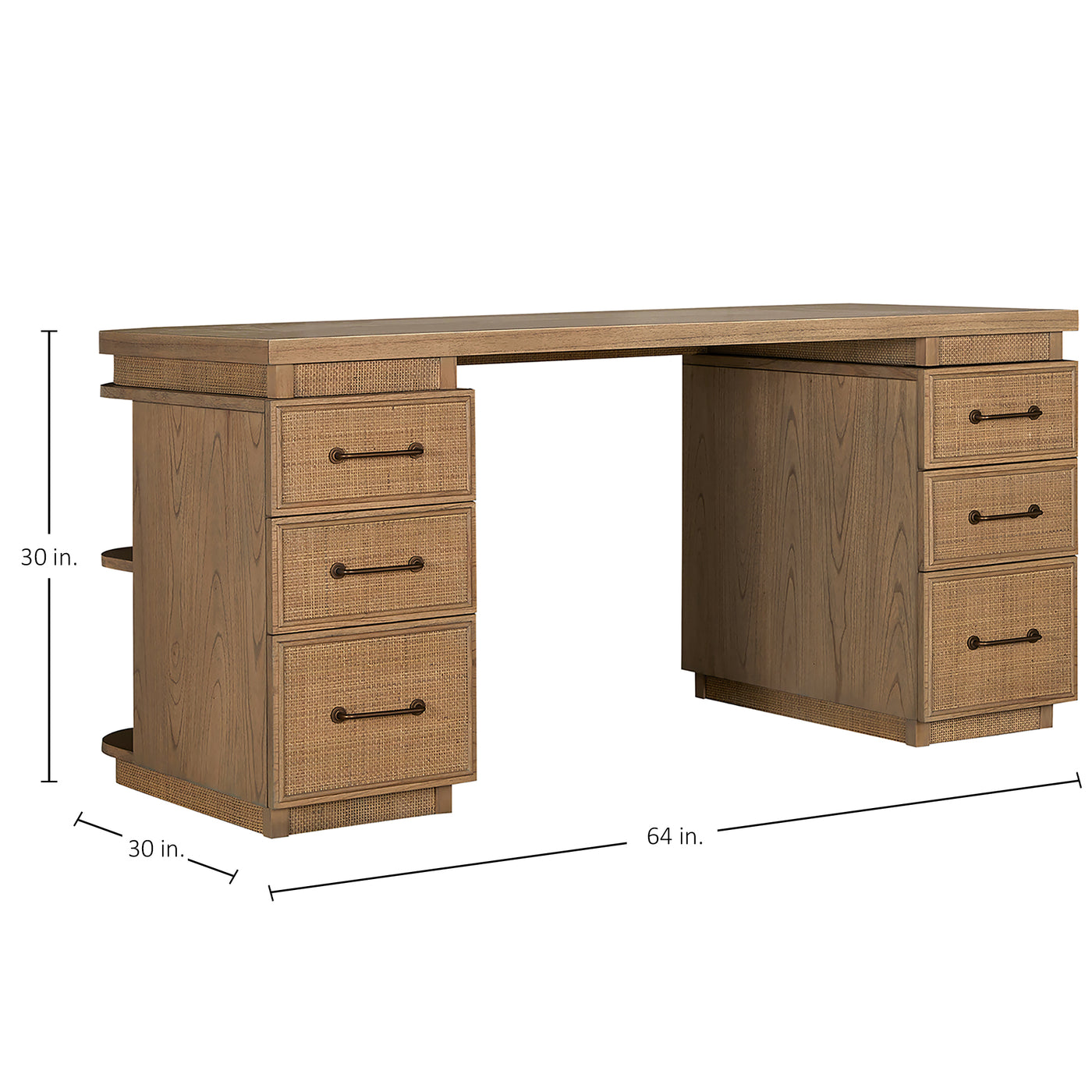 Elsa Mindi Wood Desk - 6 Soft-Close Drawers, Blonde Natural