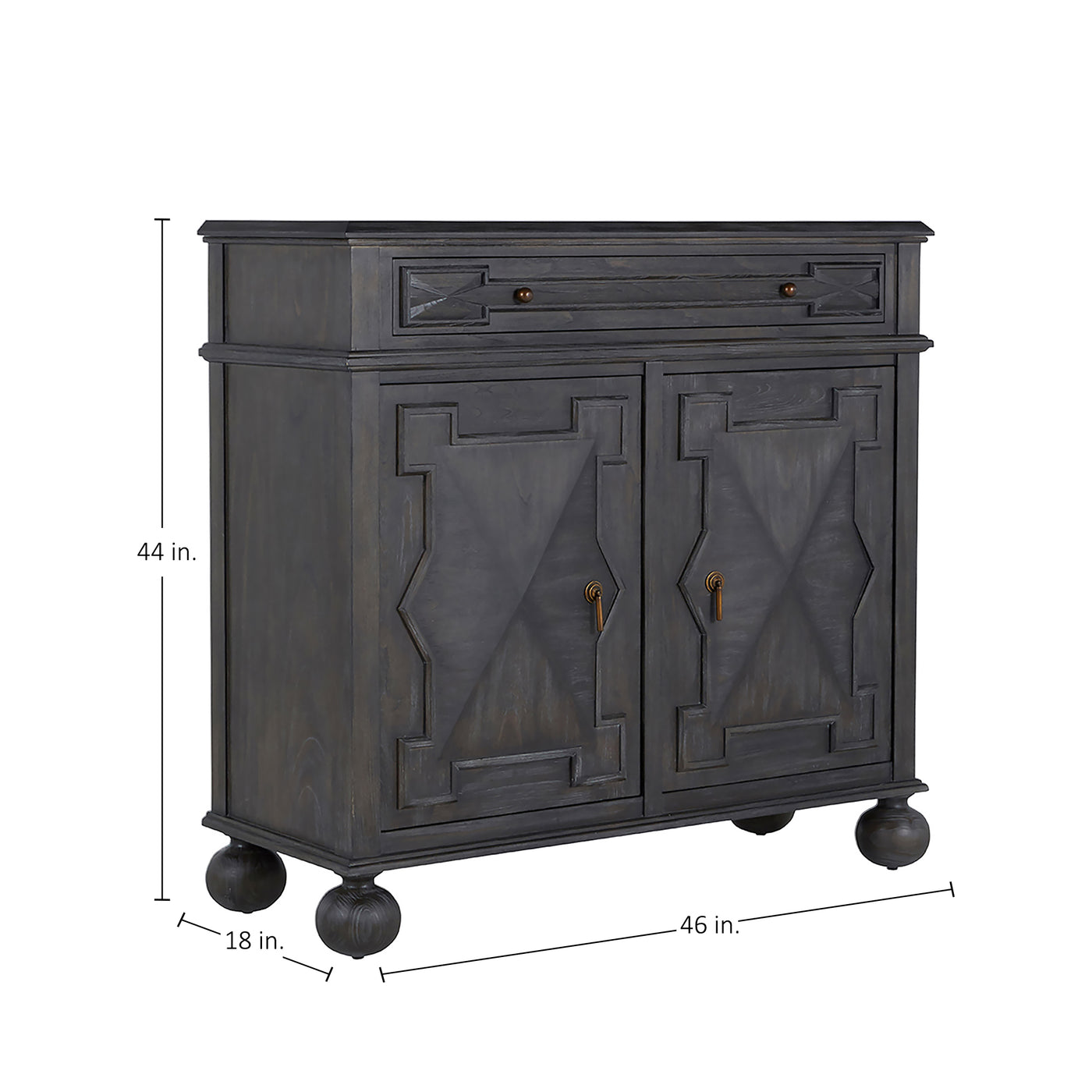 - Antique bronze hardware and classic bun feet complete the timeless, versatile look