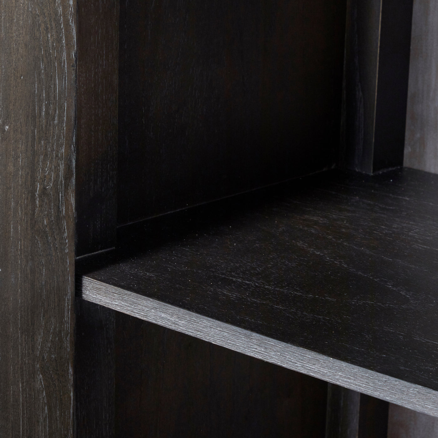 The Ezekiel Cabinet combines traditional charm with a modern twist, showcasing a geometric, faceted front design that exudes sophistication and intrigue. Its classic round bun feet add a timeless finish, making this piece a versatile addition to any decor. Crafted from mindi wood, it is finished in a cerused brown and complemented by antique bronze hardware. The Ezekiel Cabinet not only offers generous storage space but also serves as a statement piece that enhances the aesthetic appeal of any room. It also comes in a cerused white finish for a more coastal feel.
