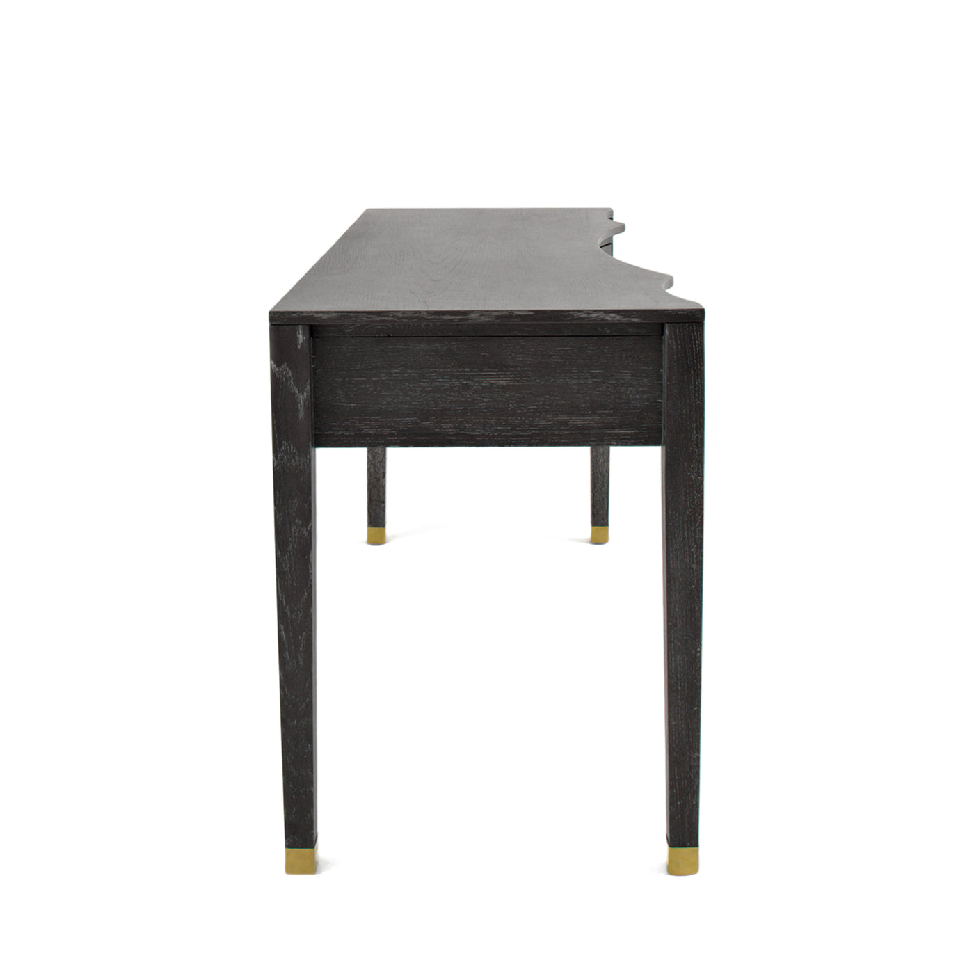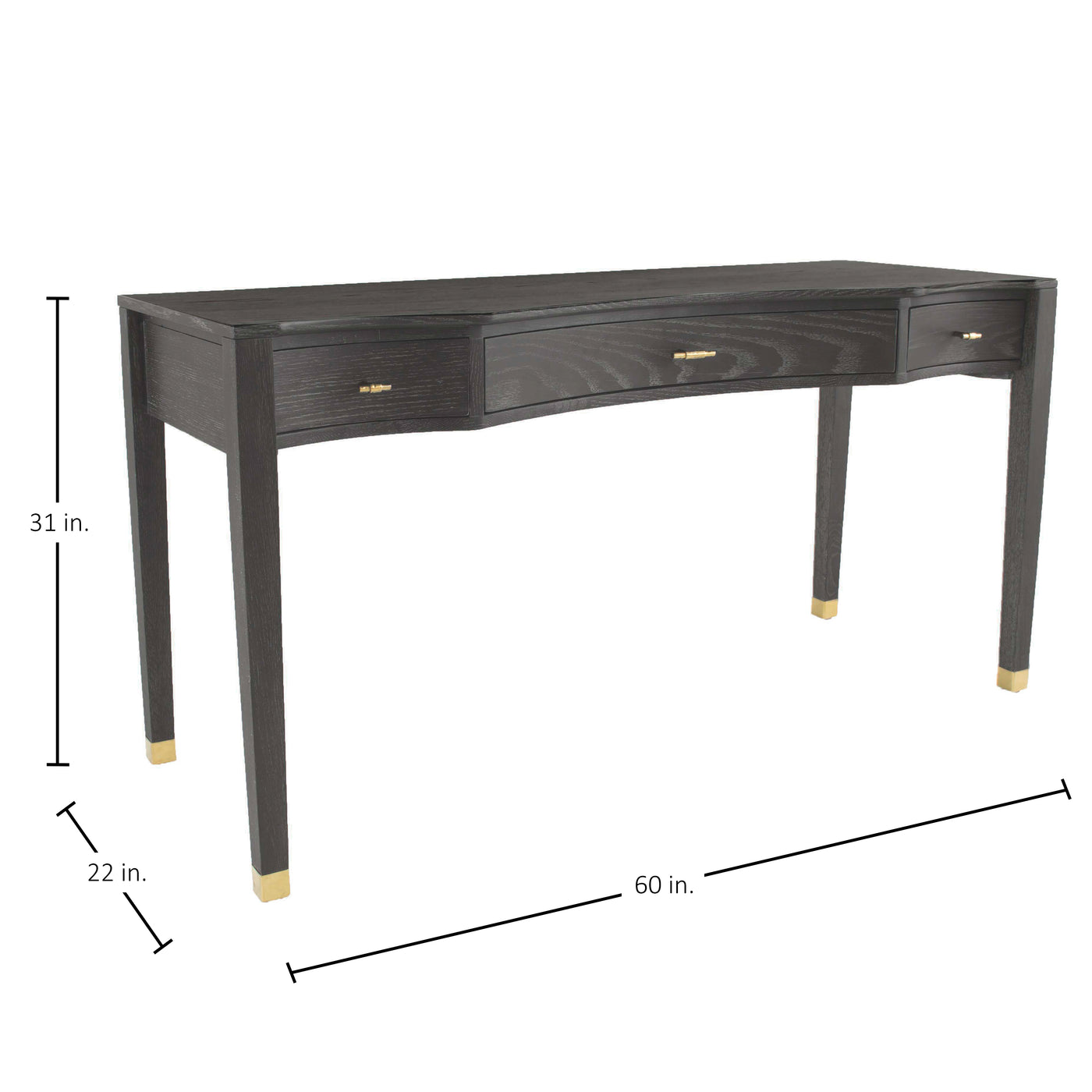 Nathan Oak Iron Scalloped Desk - 3 Drawers, Cerused Dark Gray