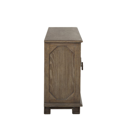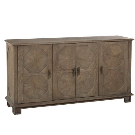 The Rhodes Cabinet from Gabby is a testament to transitional design, melding the elegance of classical furniture with the clean lines of contemporary style. Crafted to serve both aesthetic and practical purposes, it features a detailed facade with starburst veneer patterns in a rich, warm brown with Gray undertones. This cabinet, with its ample storage space, is versatile enough to function as a stylish organization solution in a bedroom or dining area or as a media center in a living space, where its cable management system ensures a clutter-free environment. The Rhodes Cabinet is a showcase of Gabby’s attention to detail, offering a sophisticated and adaptable piece of furniture that complements a myriad of interior decors.