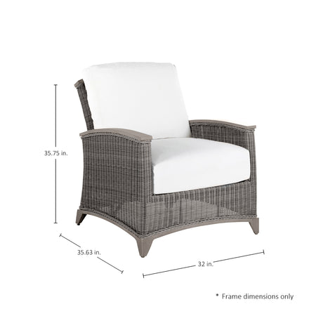 Brand Summer Classics Collection name Astoria Color family Brown, Gray, Natural Country of origin IDN Contract viable Yes Fade resistant Yes Finish family Brown, Gray Hardware finish Stainless Steel Inner frame material Wrought Aluminum Material N-Dura Resin Wicker, Wrought Aluminum Number of arms 2 Requires cushion Yes Seat back type Fixed Seating capacity 1 Stain resistant Yes Uv resistant Yes Water resistant Yes