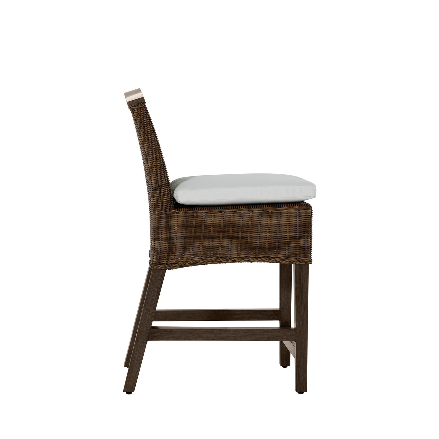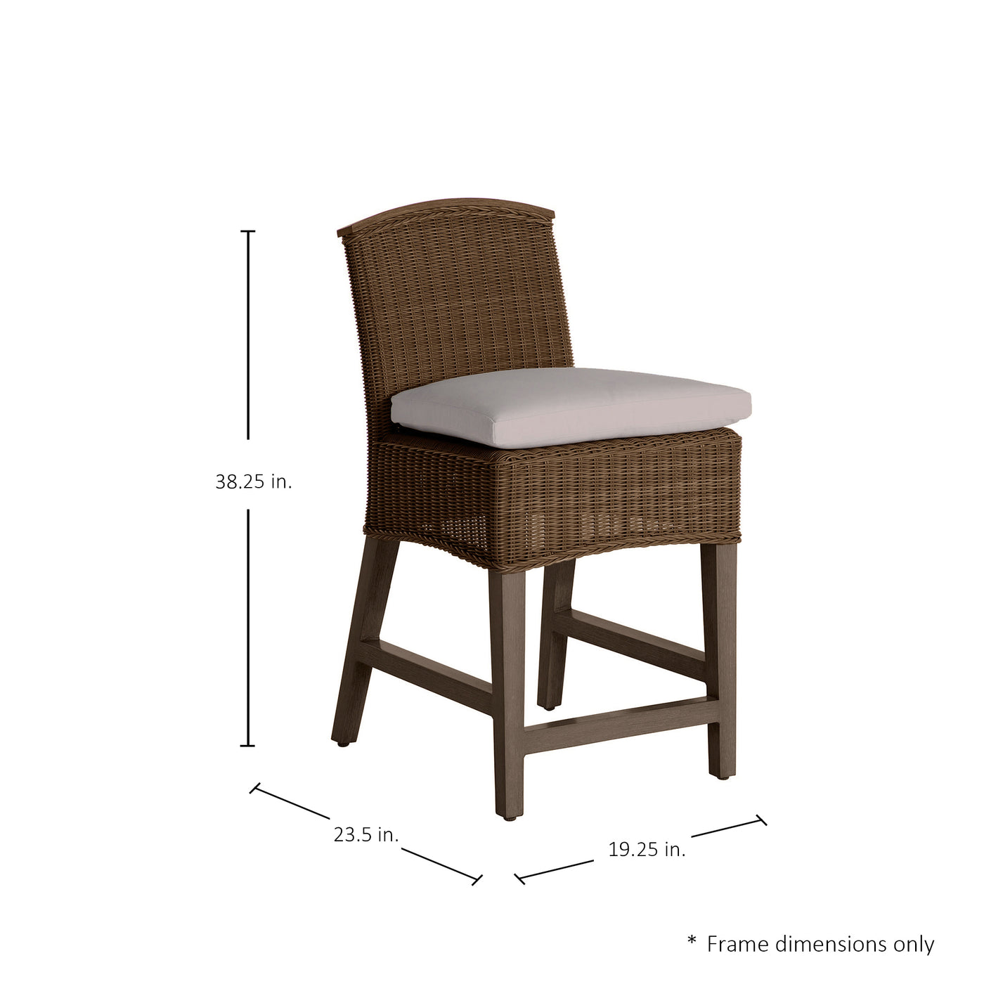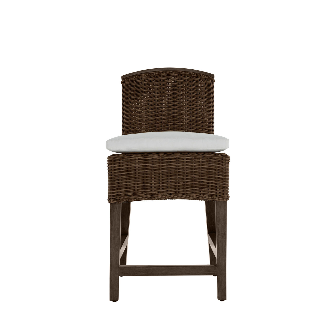 The Astoria Counter Stool beautifully marries elegance and resilience, blending our exclusive N-Duraâ„¢ resin wicker with a robust wrought aluminum frame. This stool's timeless design and durable materials offer a chic yet practical addition to any outdoor counter space, providing a comfortable perch for leisurely alfresco meals or casual gatherings. This item is designed to be enjoyed either with or without a cushion. Please designate your choice in the below "Select a Cushion" dropdown.