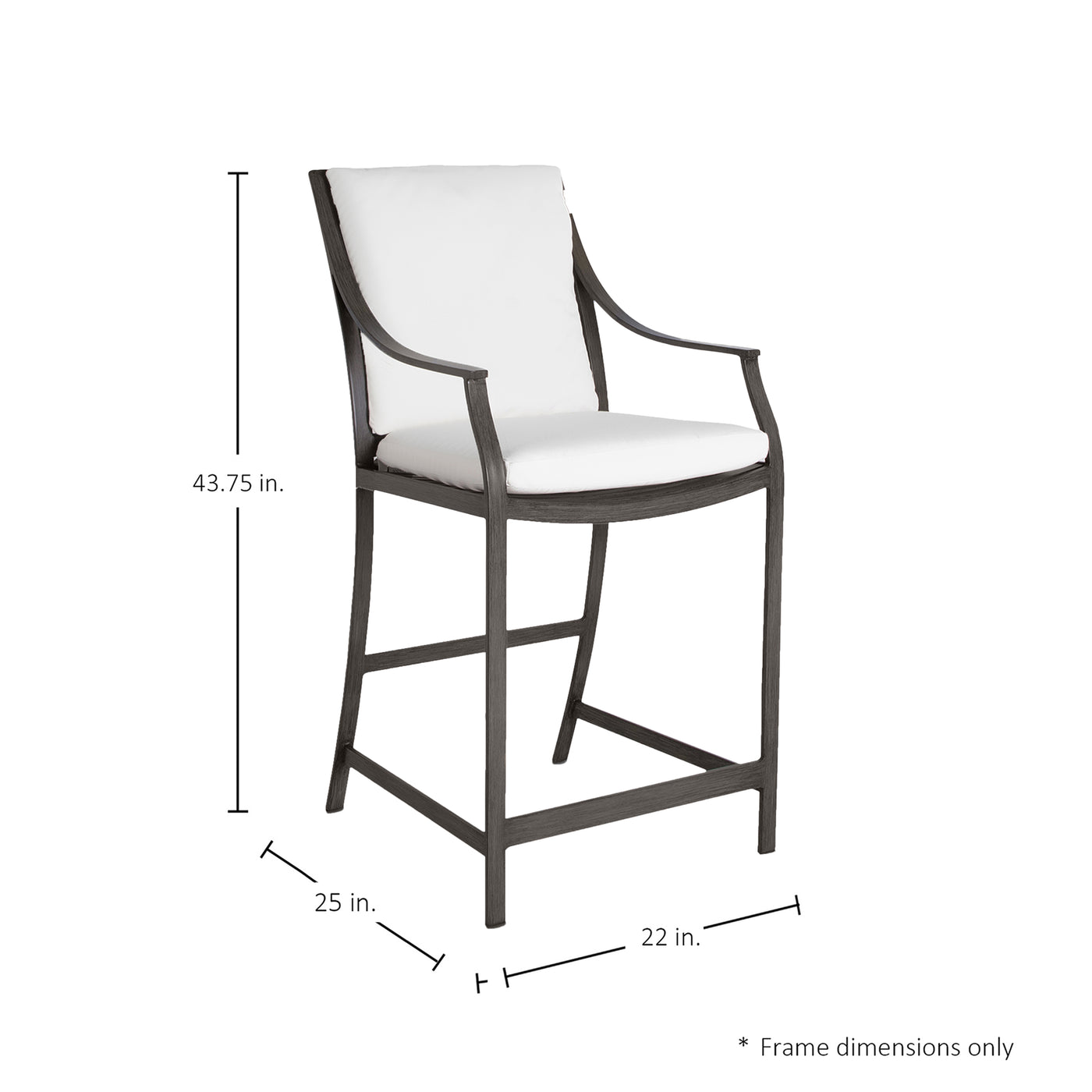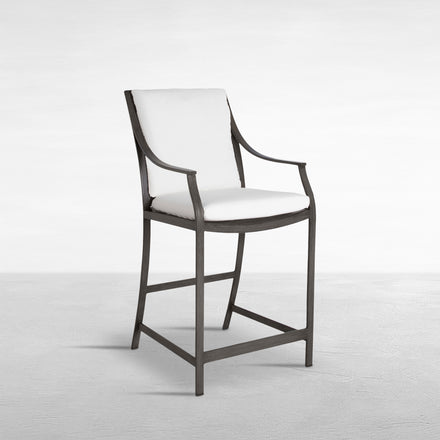 The Monaco Counter Stool elegantly marries modern design with classic touches. Crafted from wrought aluminum with a slim profile, this collection boasts graceful sloping arms and a distinctive X-frame design that creates a timeless look. The triple-layered coating on our wrought aluminum includes powder, dry, and clear polyurethane coats, ensuring resistance to corrosion, fading, and wear, making it perfect for withstanding harsh elements and frequent use. This item is designed to be enjoyed either with or without a cushion. Please designate your choice in the below "Select a Cushion" dropdown.