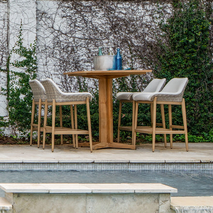 Elevate your outdoor entertaining with our award-winning Palma Bar Stool, part of our incredibly durable Palma Collection. This bar stool features our exclusive N-Dura™ resin wicker, renowned for its stunning appearance and long-lasting durability. The seat is covered in marine-grade vinyl, providing comfort and resilience against the elements, with the added comfort of a built in cushioning made for the outdoors. With a sturdy wrought aluminum frame, the Palma Bar Stool combines sleek, contemporary design with exceptional strength, making it a perfect addition to any outdoor bar setting.