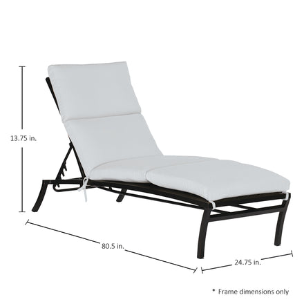 The Aire Chaise is the epitome of outdoor relaxation, combining delicate aesthetics with enduring strength. Its N-Duraâ„¢ resin wicker weave offers superior weather resistance, ensuring lasting beauty and functionality. Underneath this resilient weave, the hand-welded wrought aluminum frame provides sturdy support and easy adjustability for optimal reclining. With its stackable feature, this chaise lounge provides a smart solution for easy storage, making it an ideal choice for any outdoor space. Available with custom cushions for enhanced comfort, this chaise can be appreciated in its minimalist elegance or paired with plush cushioning. Please designate your choice in the below "Select a Cushion" dropdown.