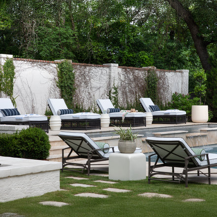 In the Monaco collection, slim, elegant silhouettes combine with gracious details. Crafted of enduring wrought aluminum, the Monaco Aluminum Chaise Lounge's refined accents, including sloping arms and the signature X-frame design, create a timeless statement.
