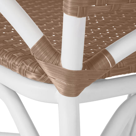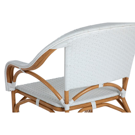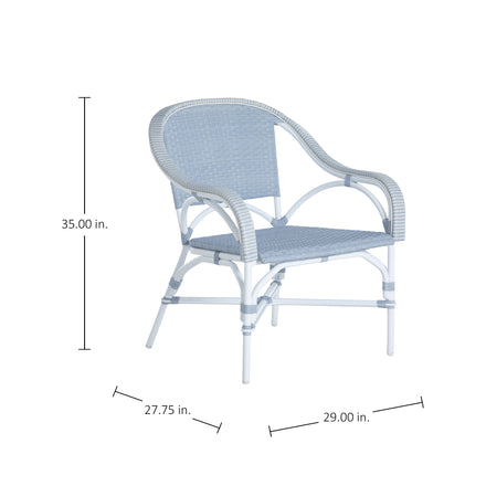 Brand Summer Classics Collection name Savoy Color family Blue, Natural, White & Ivory Country of origin IDN Contract viable Yes Fade resistant Yes Finish family White Hardware finish Stainless Steel Inner frame material Wrought Aluminum Material N-Dura Resin Wicker, Wrought Aluminum Number of arms 2 Requires cushion No Seat back type Fixed Seating capacity 1 Stain resistant Yes Uv resistant Yes Water resistant Yes