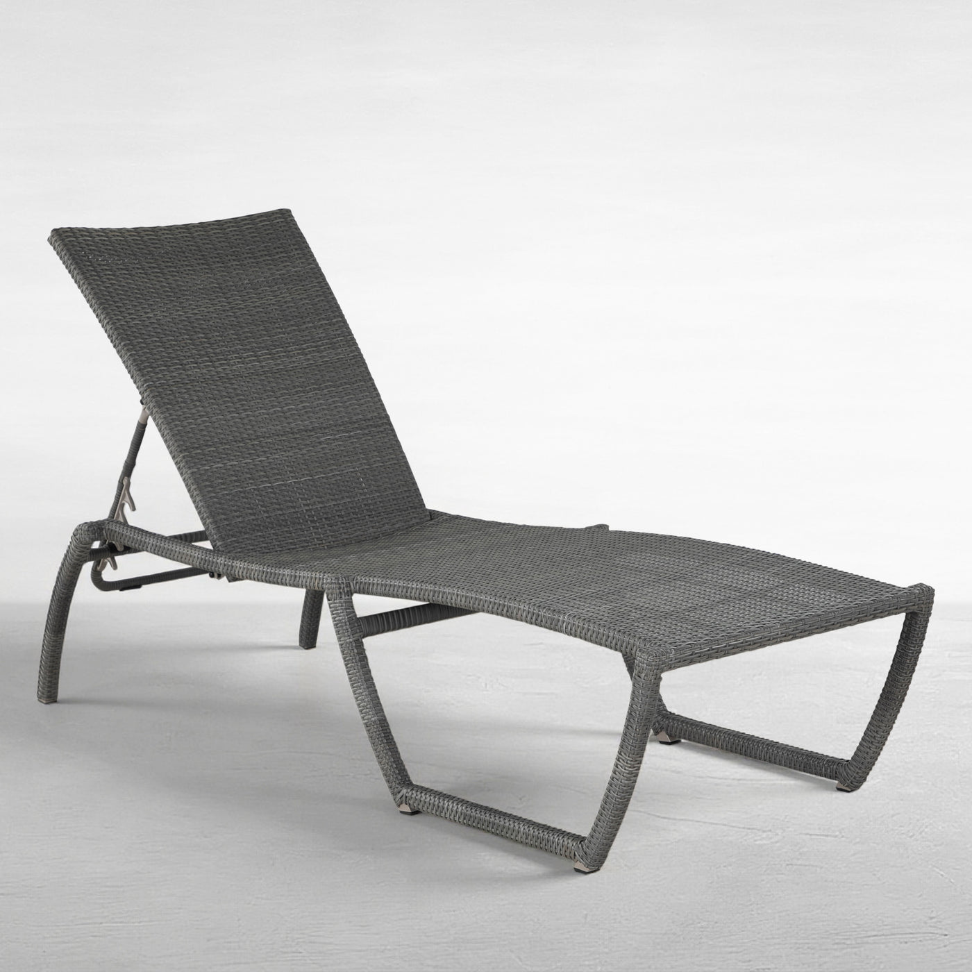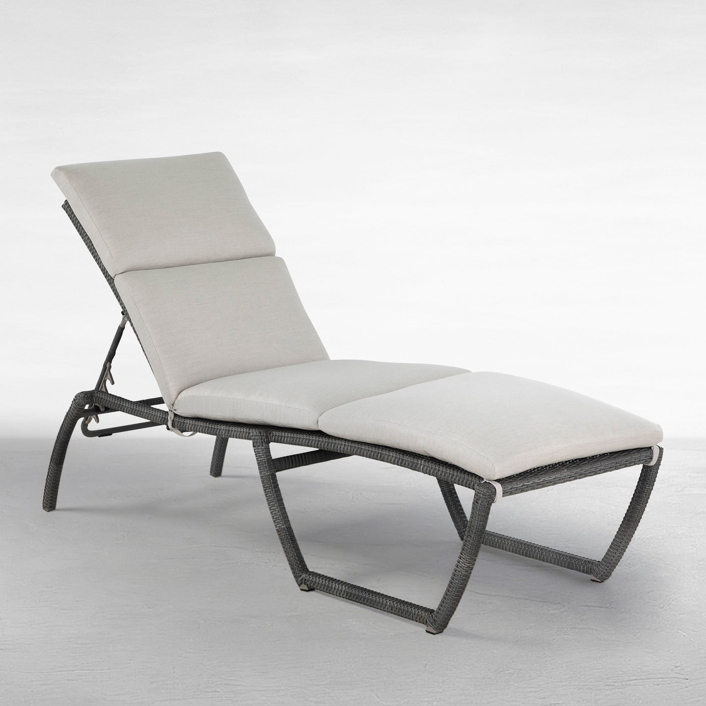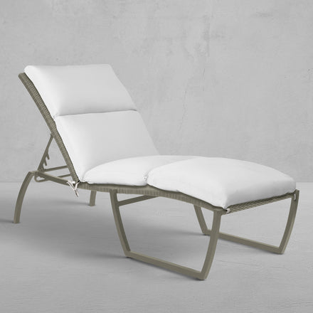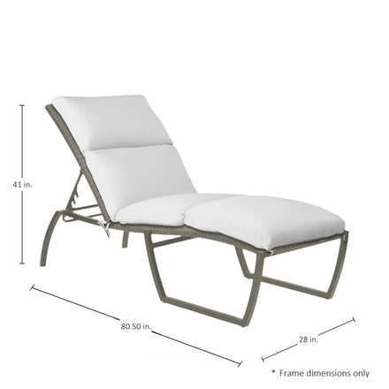 The Skye Chaise Lounge is crafted from highly weather-resistant N-Duraâ„¢ resin wicker for a classic outdoor style. The chair's wrought aluminum frame ensures stability and long-lasting beauty. With its stackable feature, this chaise lounge provides a smart solution for easy storage, making it an ideal choice for any outdoor space. This adjustable chaise beautifully accessorizes a variety of wicker patio furniture sets. This item is designed to be enjoyed either with or without a cushion. Please designate your choice in the below "Select a Cushion" dropdown.