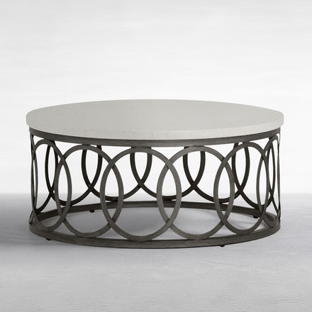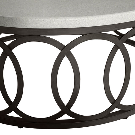 The Ella 42" Coffee Table features a base of interlocking aluminum ovals and a Superstone composite tabletop for a sophisticated accent in any outdoor room.