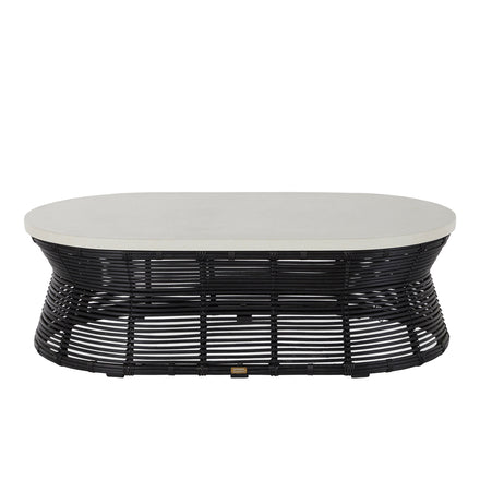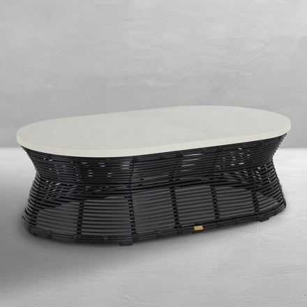 Inspired by the relaxed nature of outdoor living, the Harris Coffee Table features a distinctive oval shaped Superstone top with a sturdy woven N-dura resin wicker that is durable and exceptionally weather resistant, providing year-round beauty and long-l