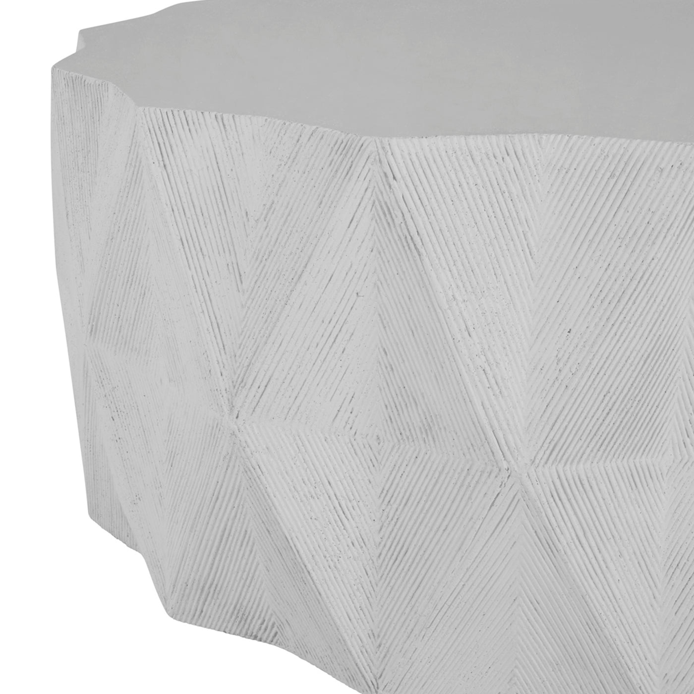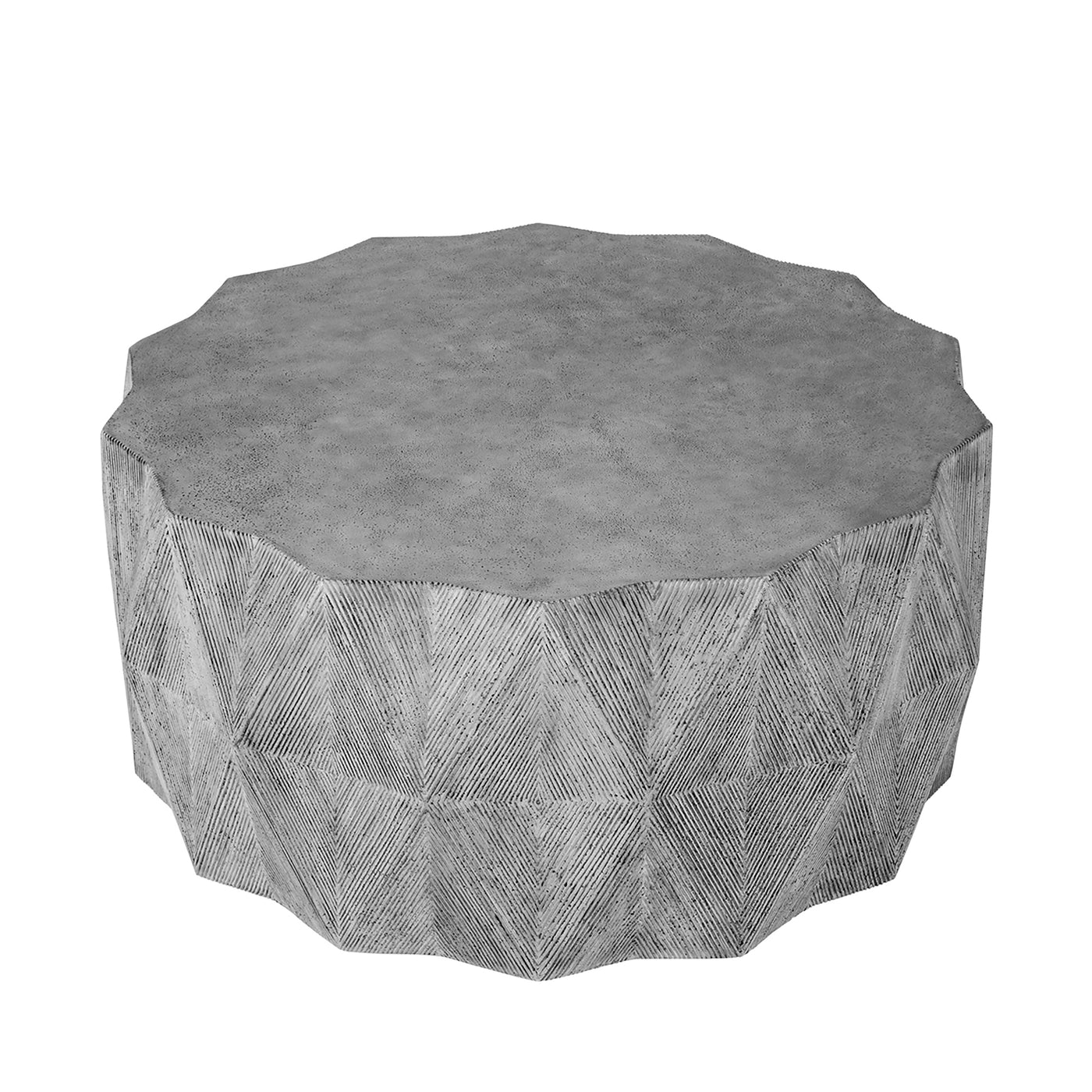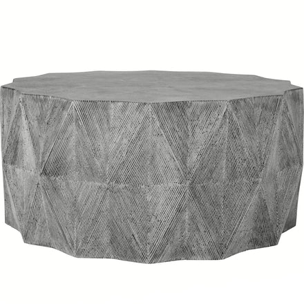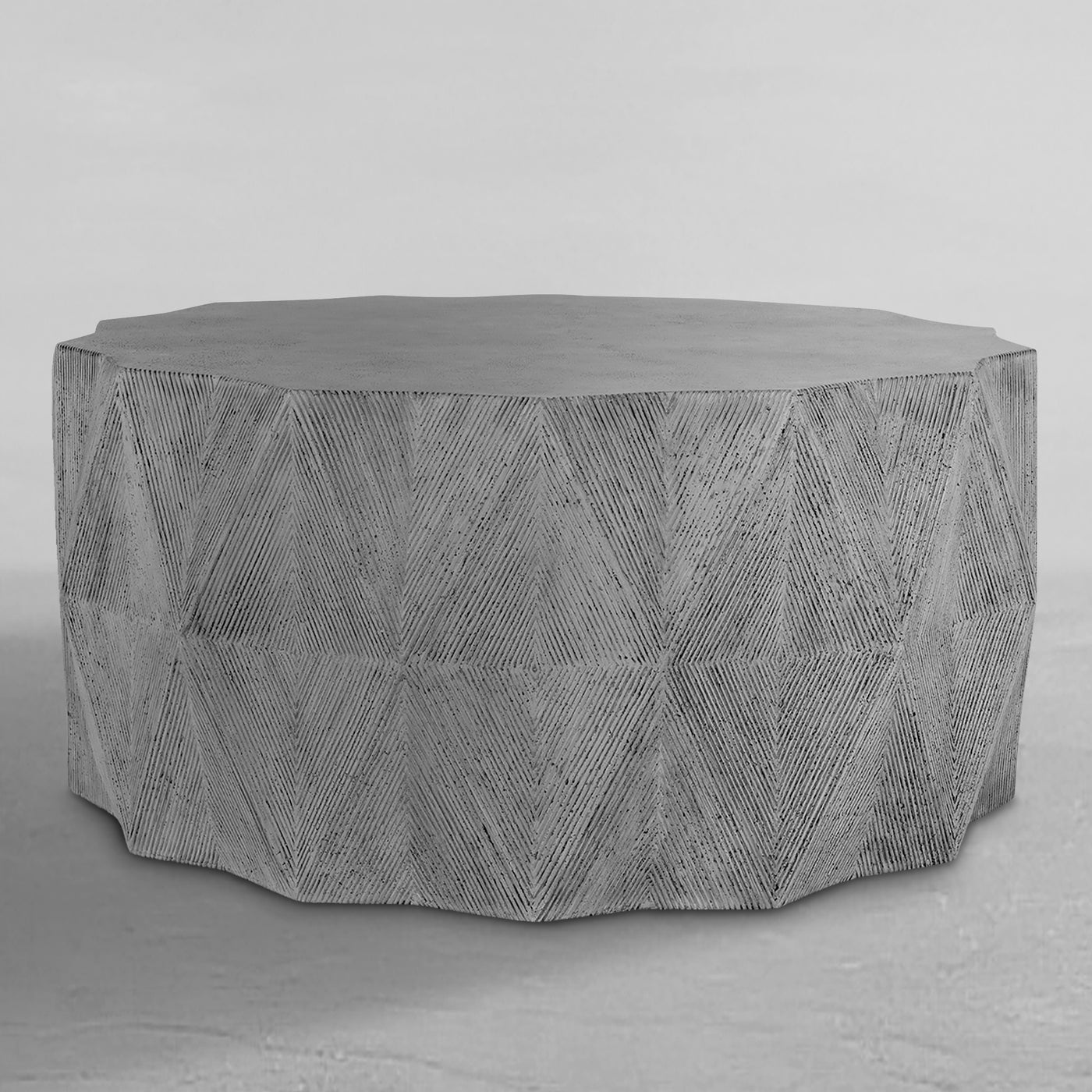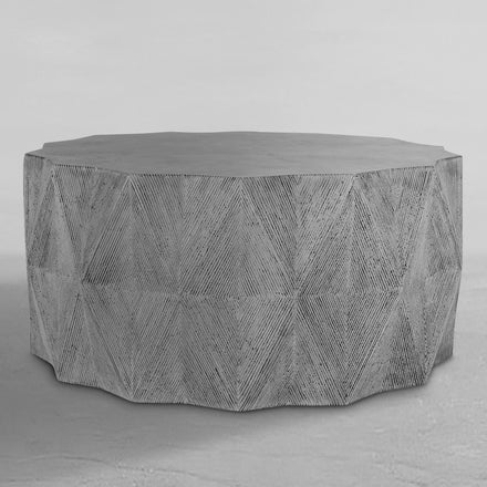 The Mandarin Coffee Table is a statement piece that effortlessly marries functional design with artistic flair. Its surface, showcasing a captivating geometric pattern, is meticulously carved to create a visual and tactile experience that adds depth and character to any setting. Made from robust cast stone, this table is not only a durable choice for both indoor and outdoor use but also a work of art that complements a wide range of styles—from modern minimalist to eclectic chic.