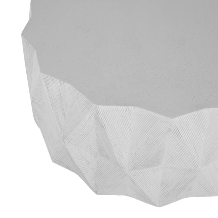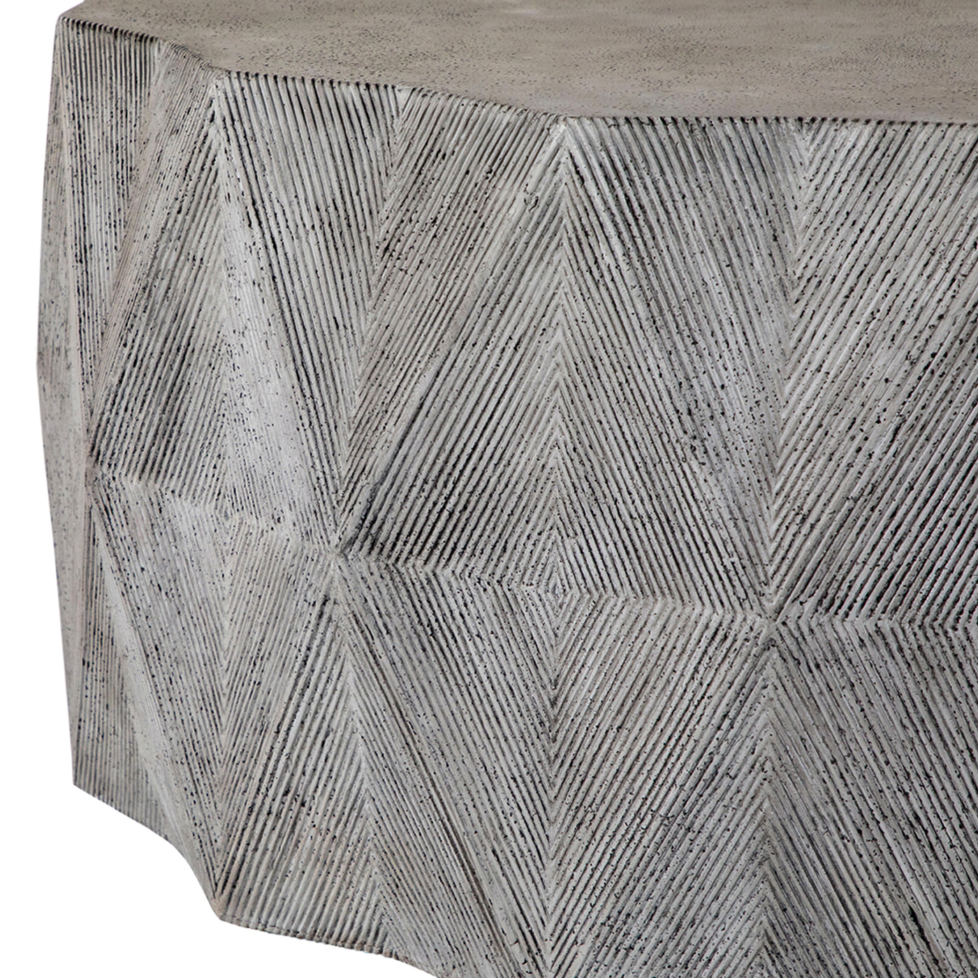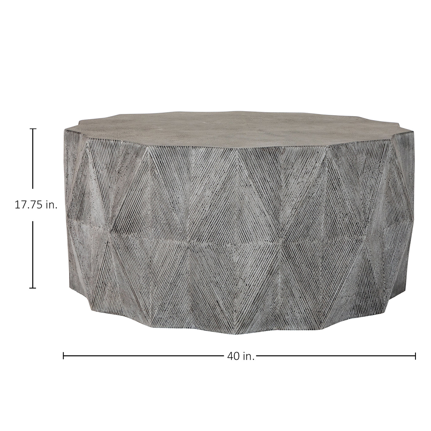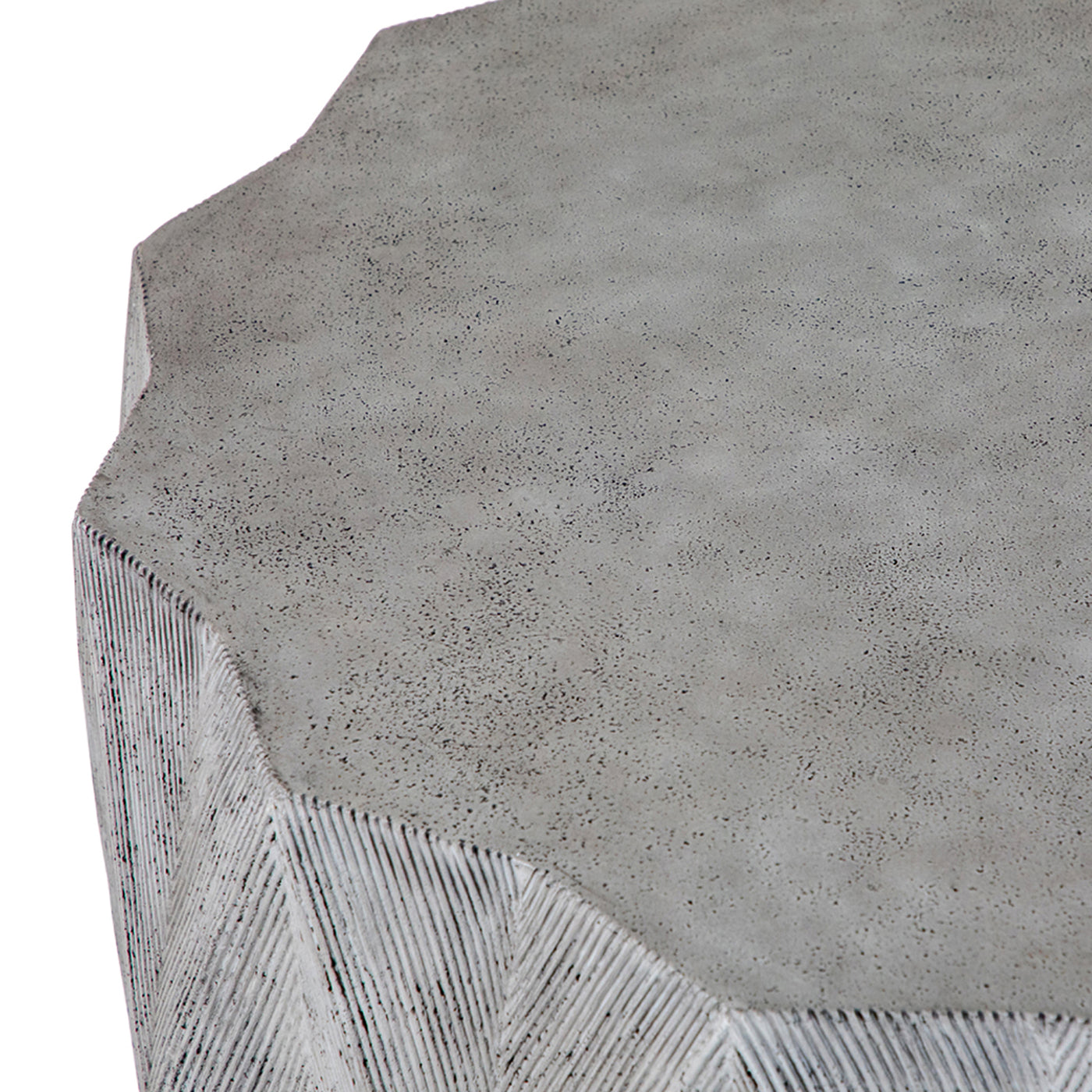 The Mandarin Coffee Table is a statement piece that effortlessly marries functional design with artistic flair. Its surface, showcasing a captivating geometric pattern, is meticulously carved to create a visual and tactile experience that adds depth and character to any setting. Made from robust cast stone, this table is not only a durable choice for both indoor and outdoor use but also a work of art that complements a wide range of styles—from modern minimalist to eclectic chic.