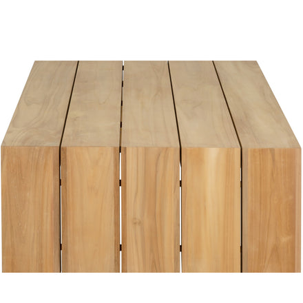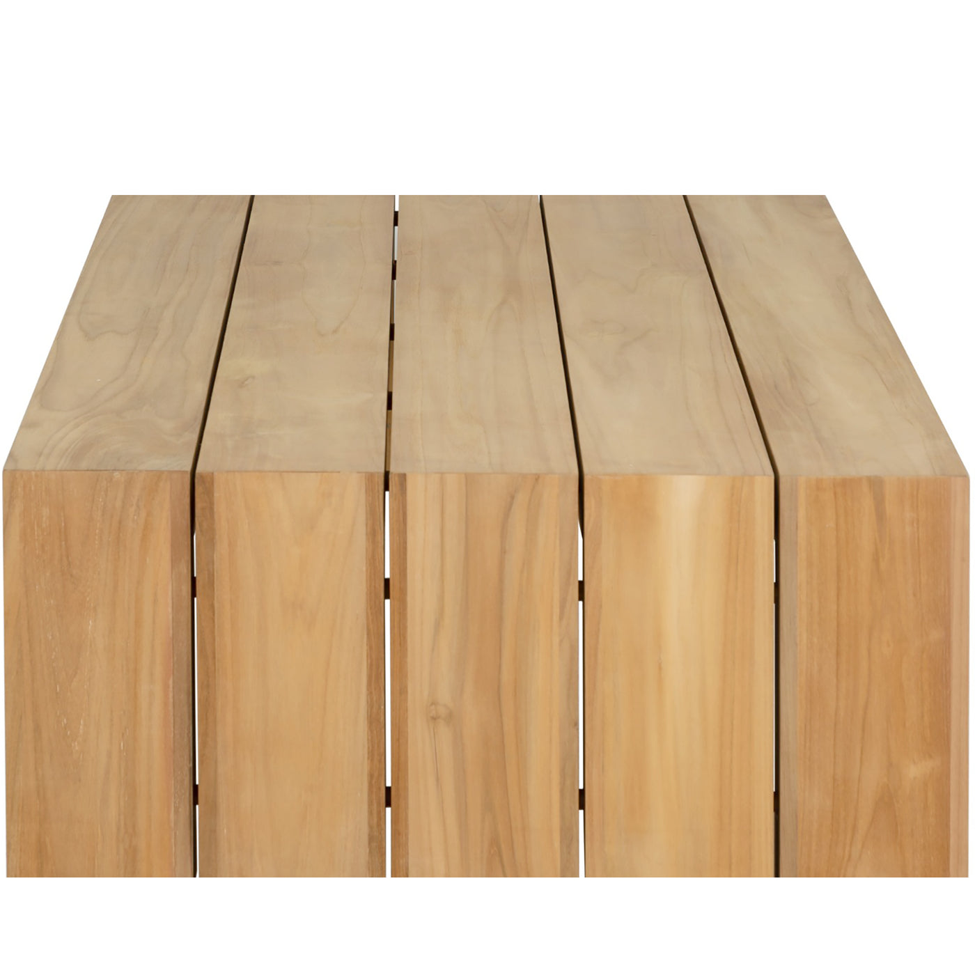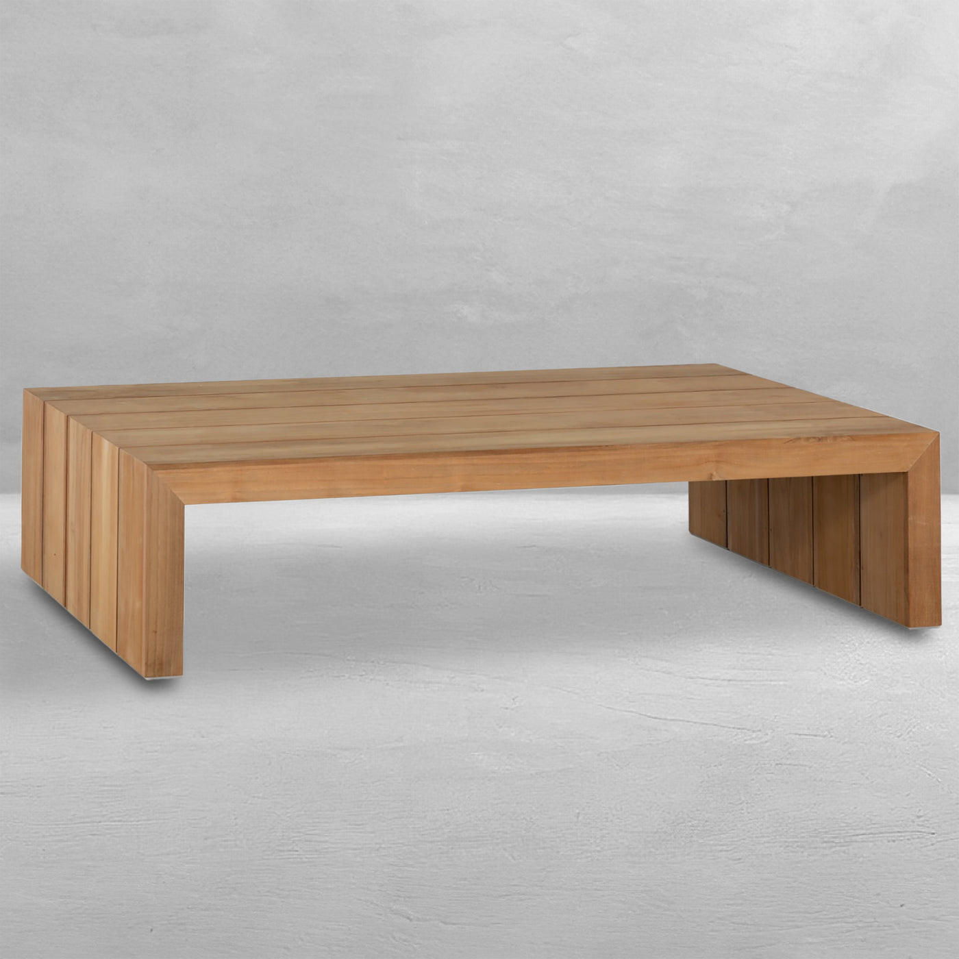 Our Messina Large Coffee Table is a contemporary masterpiece crafted from sustainably harvested teak. This table features a unique chunky waterfall design, with seamlessly aligned panels that extend to the ground. Despite its solid appearance, it's ingeniously hollowed to reduce weight, enhancing versatility without sacrificing style. Perfect for complementing various collections, its natural durability and elegant design offer timeless appeal and practicality for any outdoor space. Please note, that due to its high-quality center cut, and natural oils, teak will age gracefully without the help of cleaners and protectors.