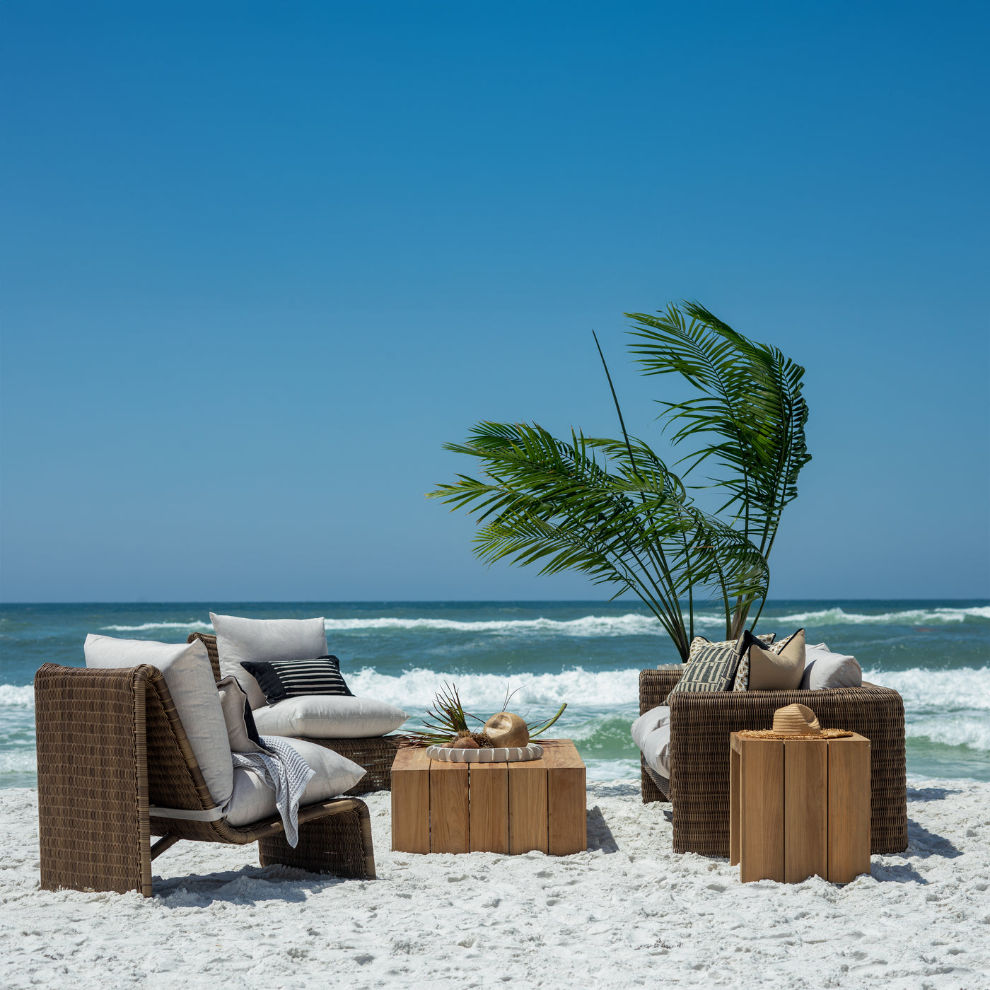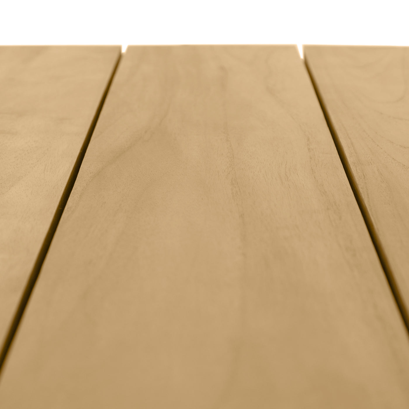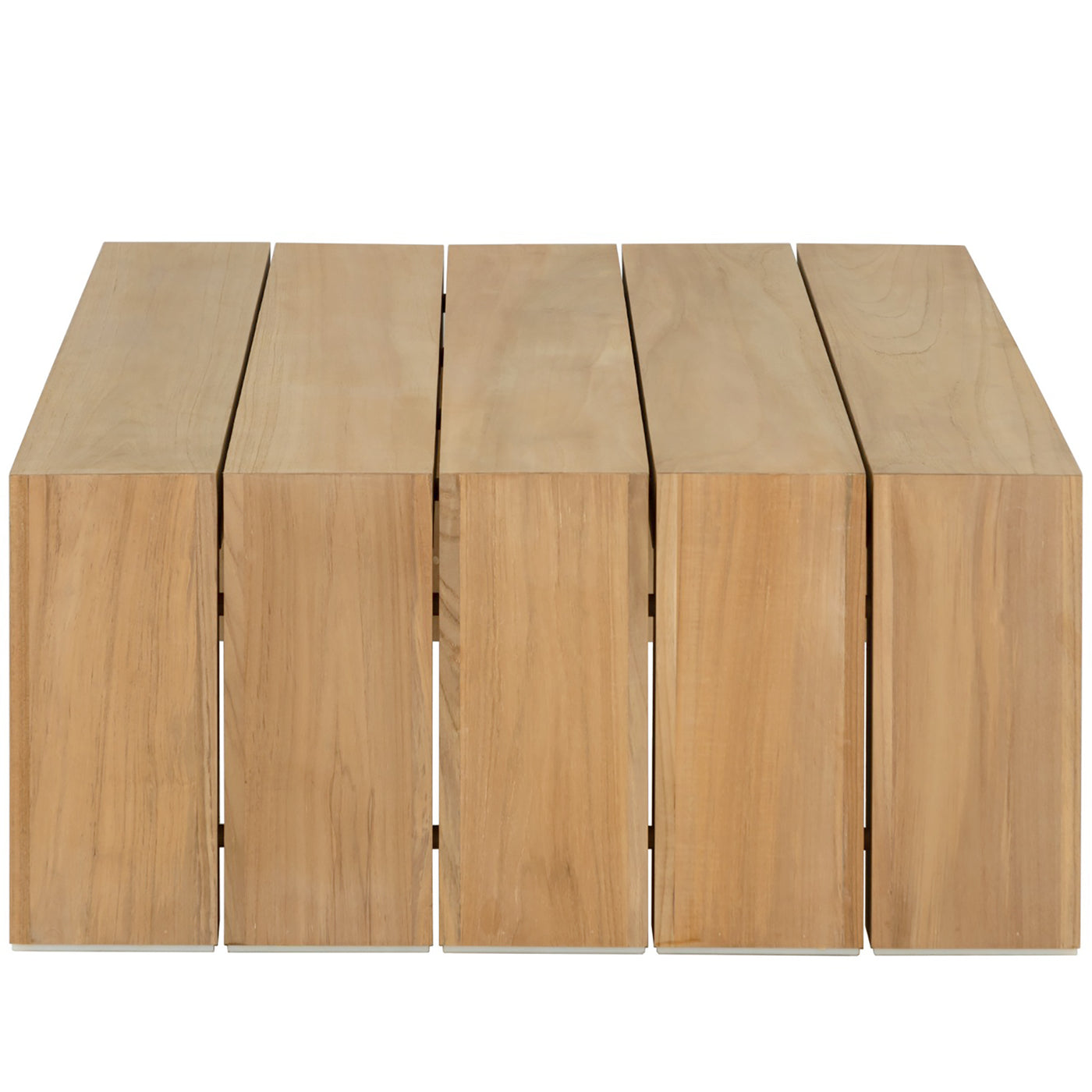 Our Messina Small Coffee Table is a contemporary masterpiece crafted from sustainably harvested teak. This table features a unique chunky waterfall design, with seamlessly aligned panels that extend to the ground. Despite its solid appearance, it's ingeniously hollowed to reduce weight, enhancing versatility without sacrificing style. Perfect for complementing various collections, its natural durability and elegant design offer timeless appeal and practicality for any outdoor space. Please note, that due to its high-quality center cut, and natural oils, teak will age gracefully without the help of cleaners and protectors.